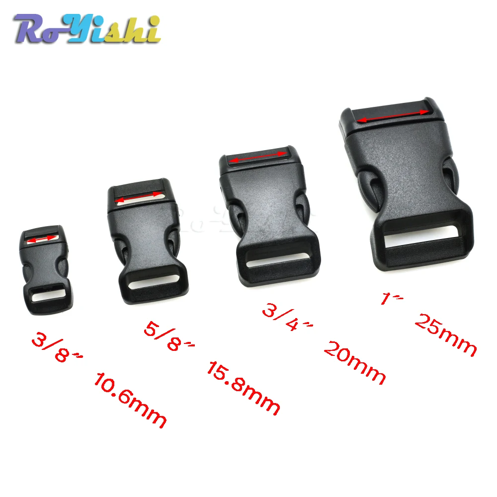 10 unids/pack Piastic hebilla de apertura lateral curvada 550 pulsera Paracord Collar de perro mochila Correa correas 10mm 15mm 20mm 25mm