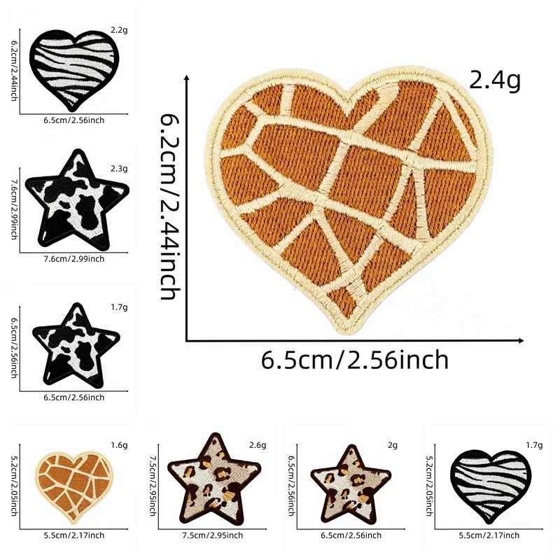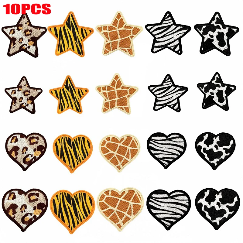 10 unids/set amor corazón estrella de cinco puntas patrón de leopardo sombrero chaquetas zapatos DIY parche bordado Retro hierro en parches insignia de costura