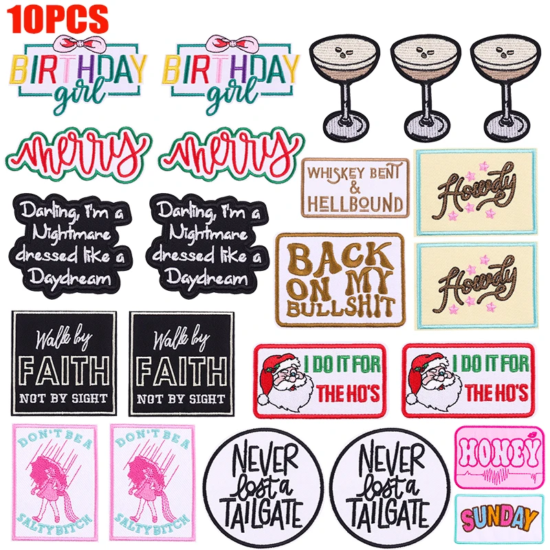 10 unids/set DIY parche de dibujos animados/letra bordada parches letra eslogan parche hierro en parches para ropa chaquetas sombreros coser pegatina