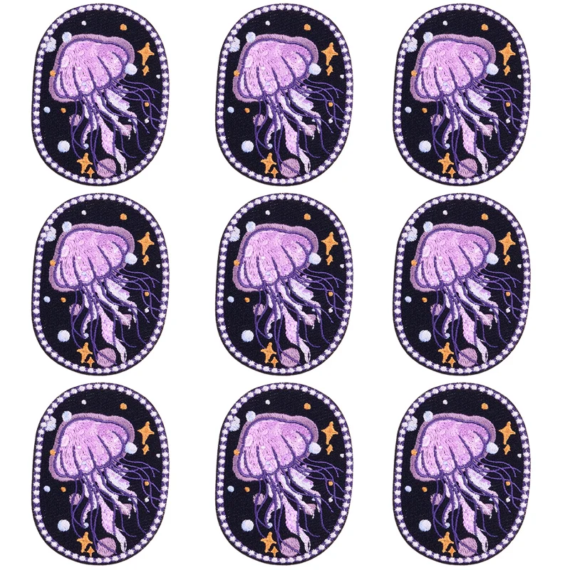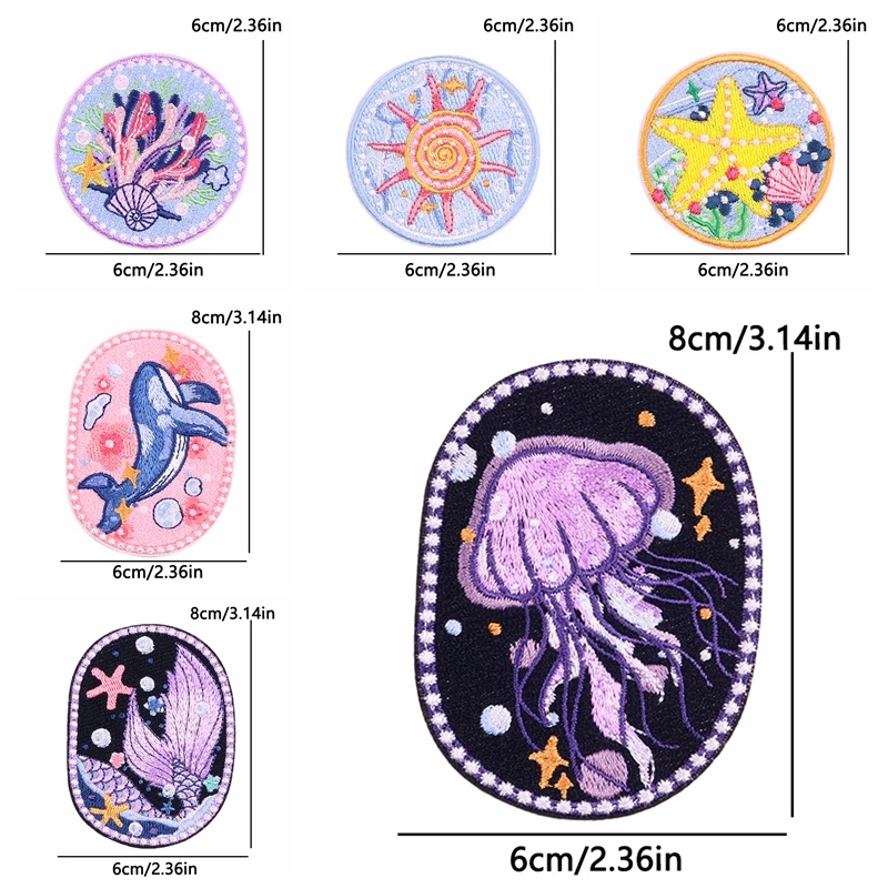 10 unids/set mar Parche bordado de animales, parches para planchar de dibujos animados DIY para ropa, parches termoadhesivos, bolsas vaqueras, insignias para coser