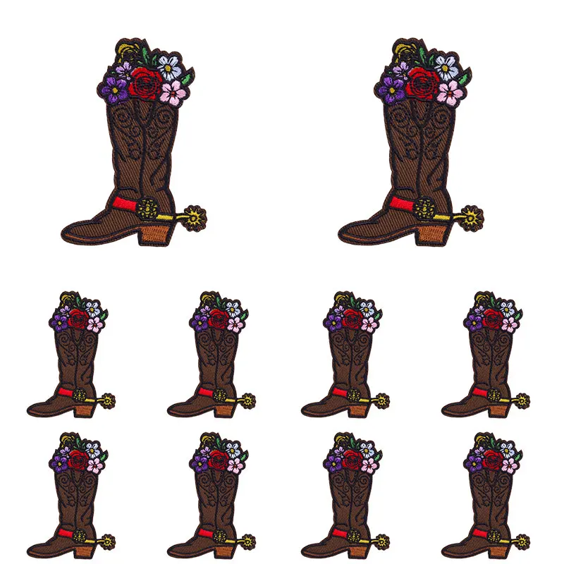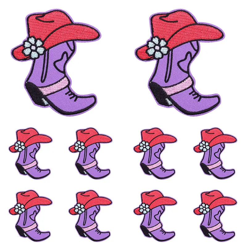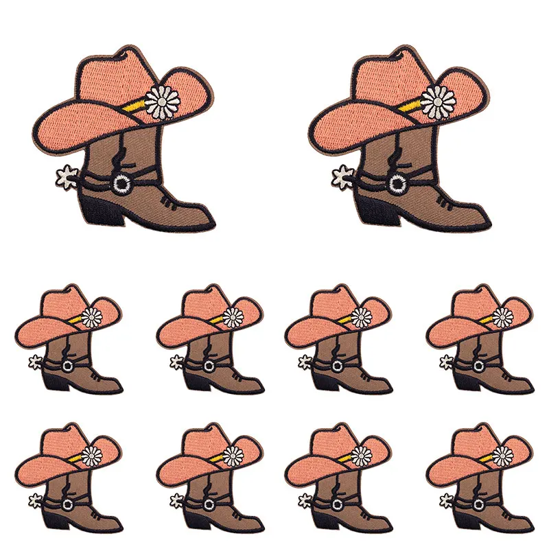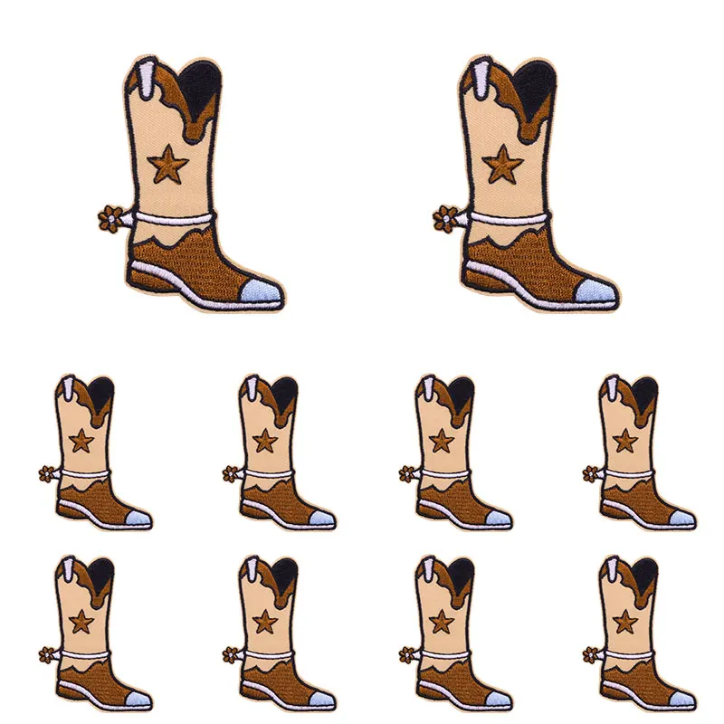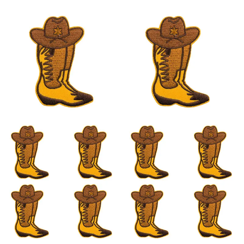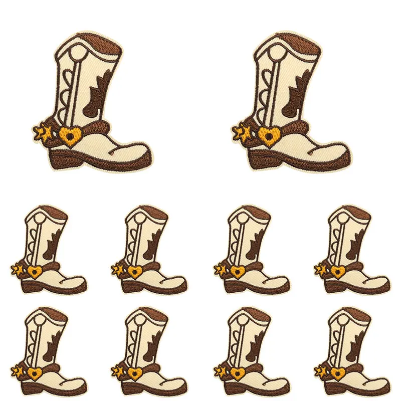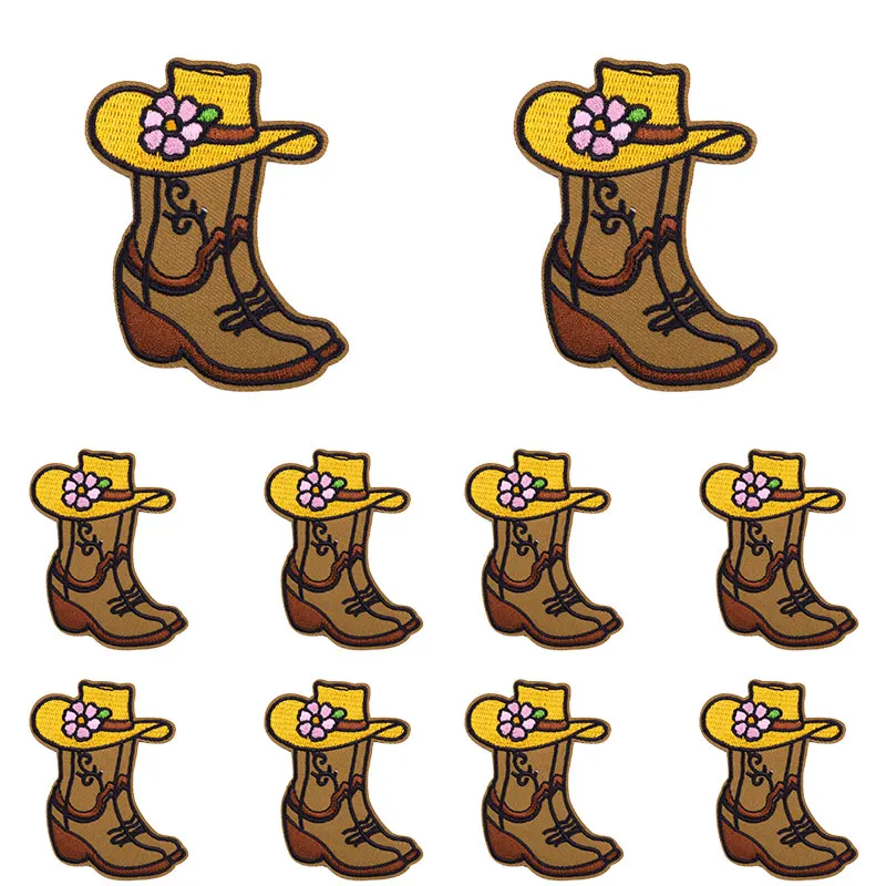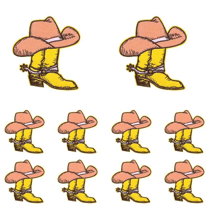 10 unids/set nuevas botas de vaquero parche dibujos animados parches bordados mochila sombreros chaquetas coser parche hierro en parches para ropa DIY