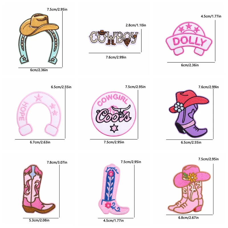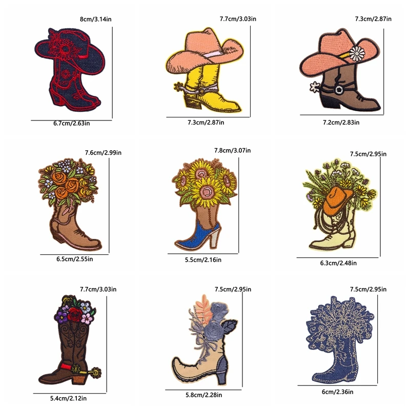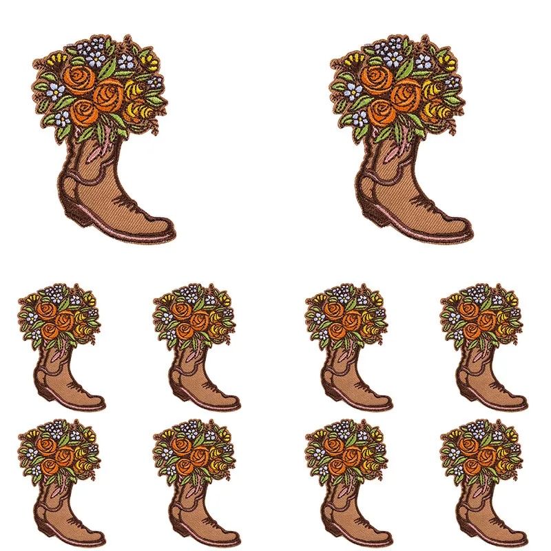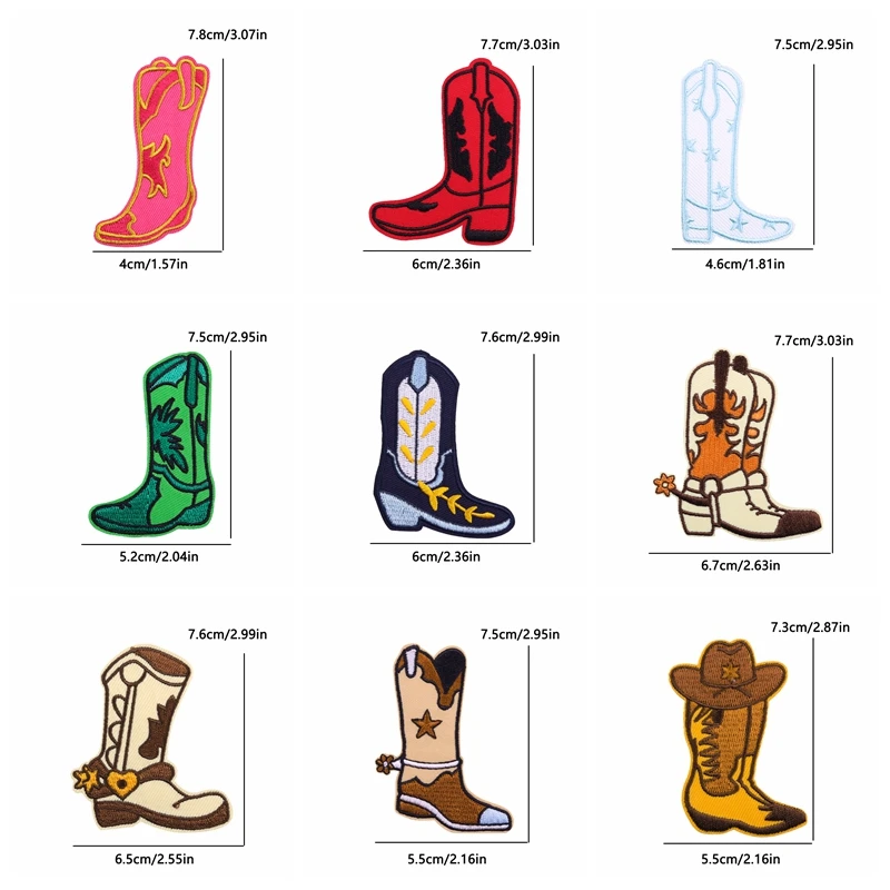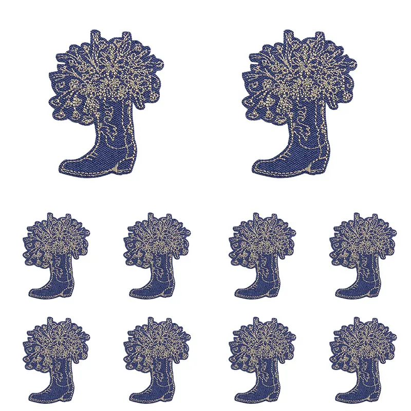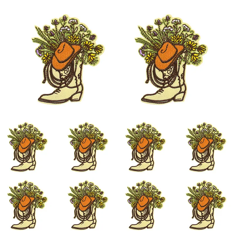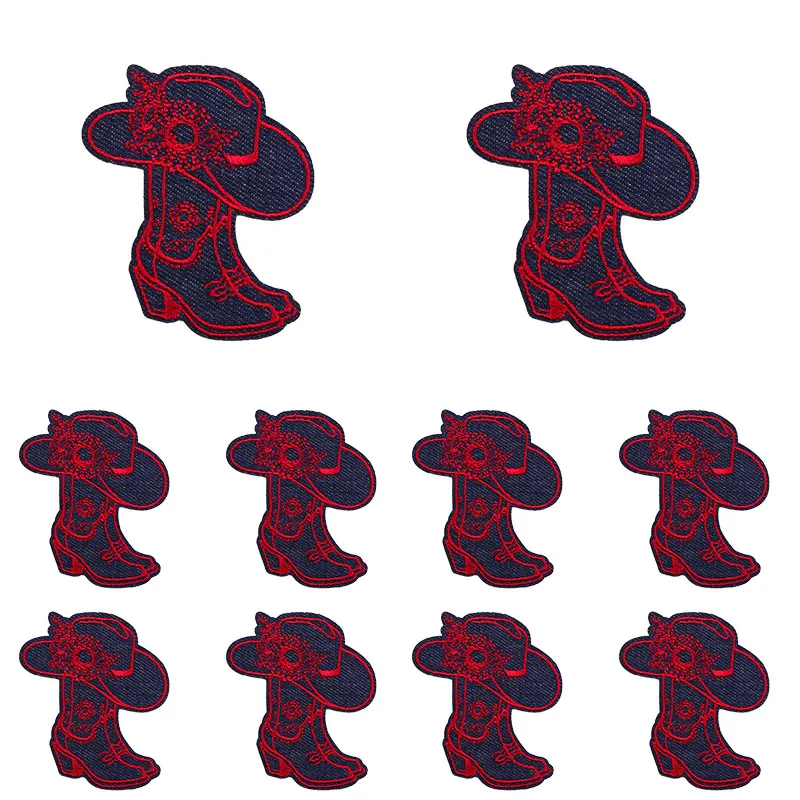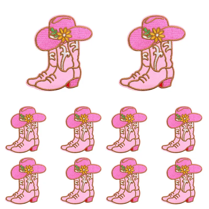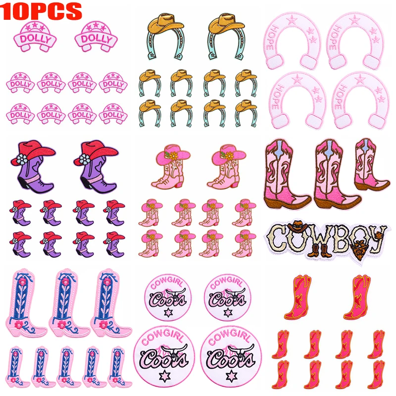 10 unids/set nuevas botas de vaquero parche dibujos animados parches bordados mochila sombreros chaquetas coser parche hierro en parches para ropa DIY