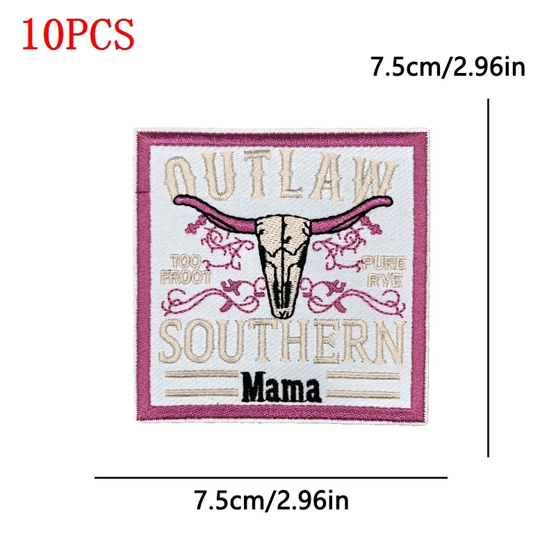10 unids/set Outlaw Mama letras parches para planchar para ropa parches bordados de estilo occidental en camiseta insignia con apliques de personalidad