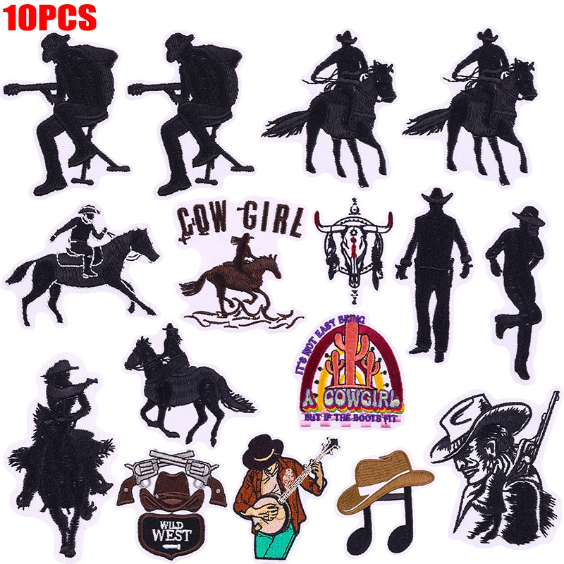 10 unids/set parche de estilo vaquero occidental DIY decorar ropa sombreros zapatos insignias bordadas pegatinas hierro en parches para ropa