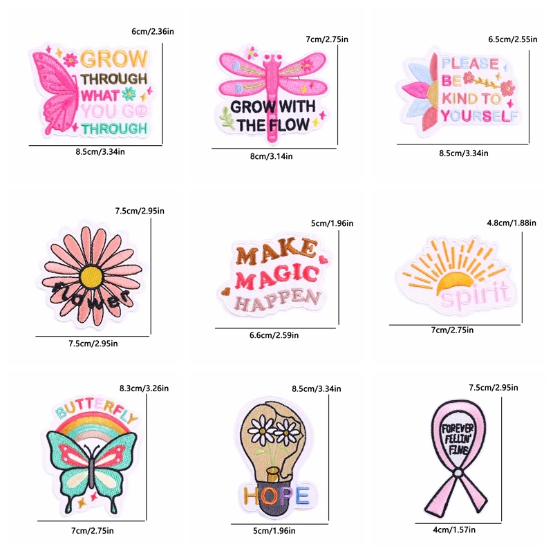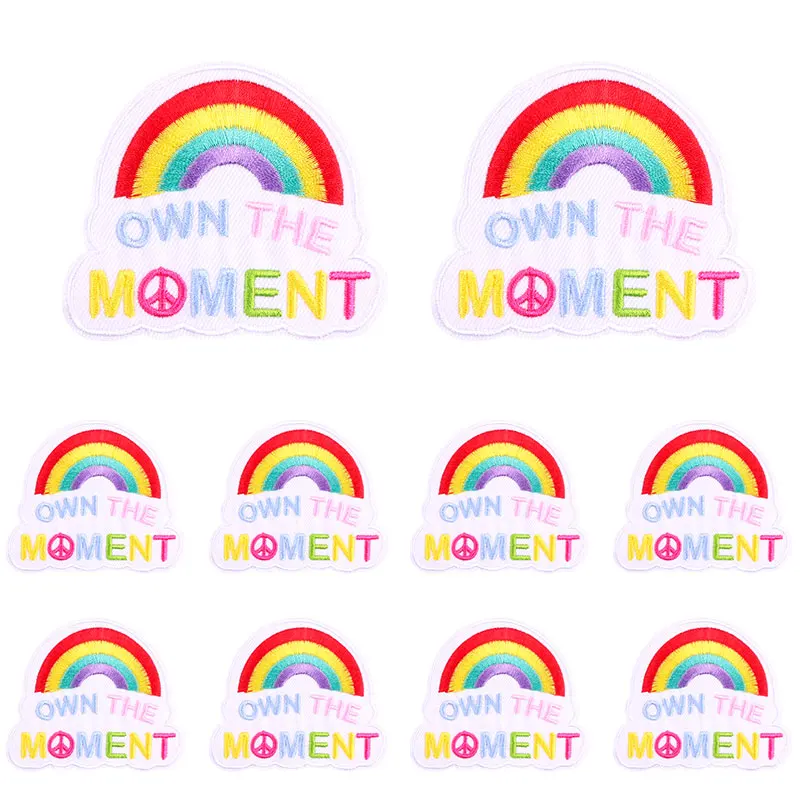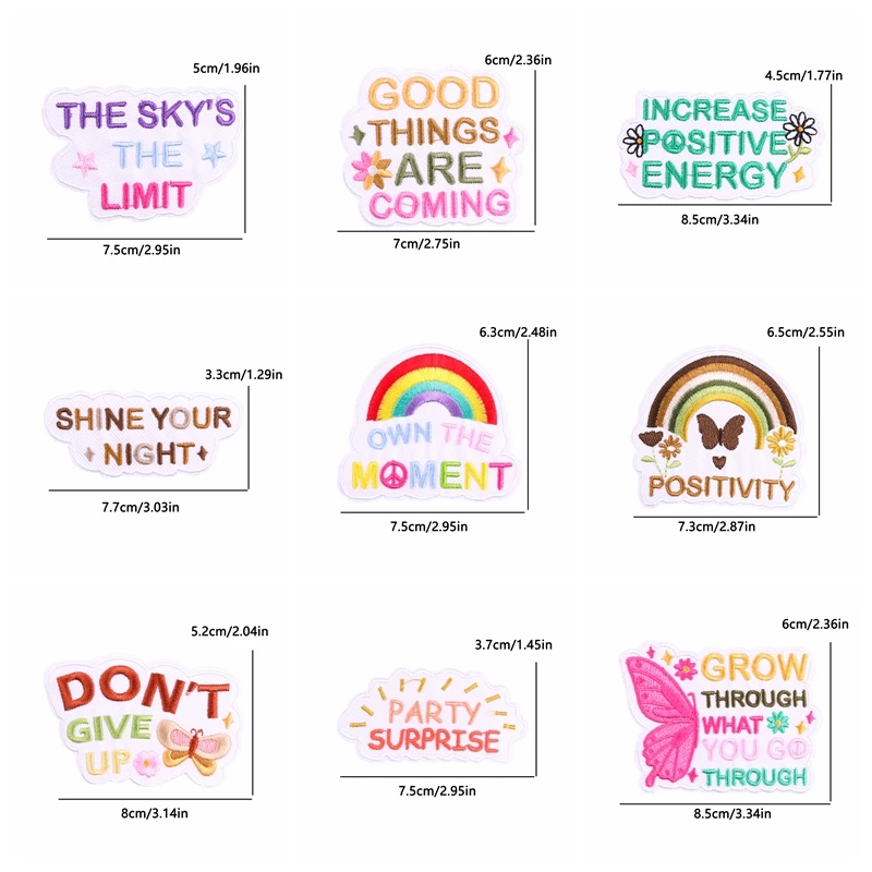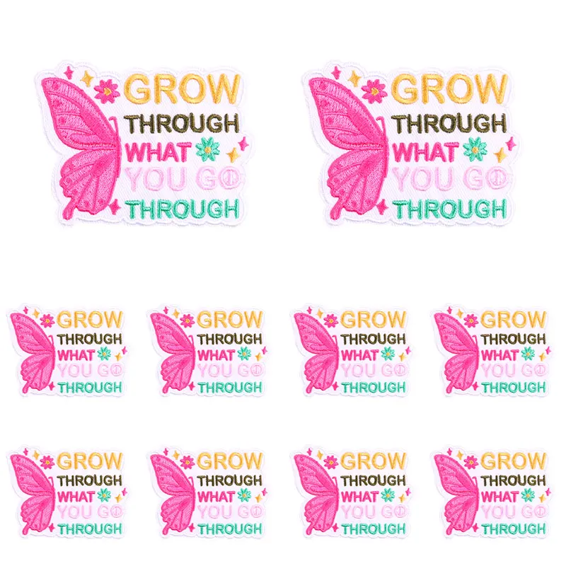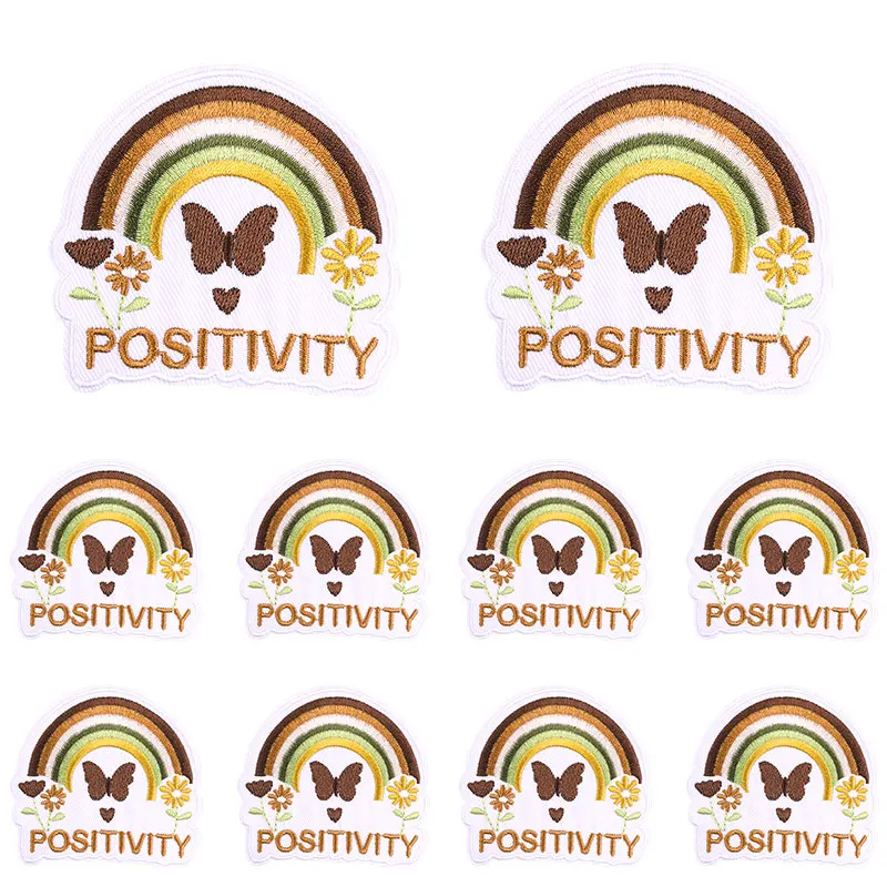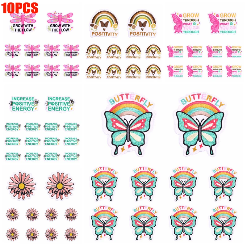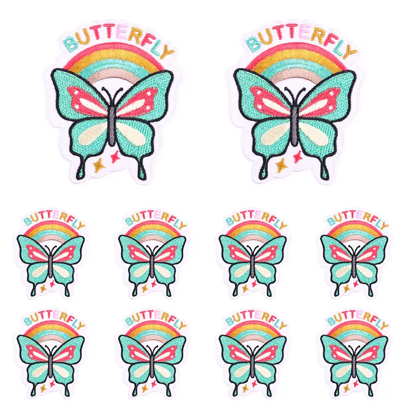 10 unids/set parche de mariposa arcoíris lema de letras de dibujos animados parches bordados planchar en parches para ropa chaqueta sombrero mochila DIY