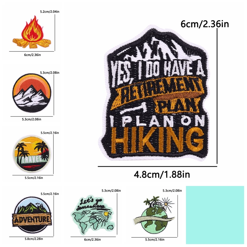 10 unids/set de parches bordados para acampada/aventura de montaña para chaquetas, autobús, Jeep, bicicleta, parches para planchar para ropa, mochila DIY