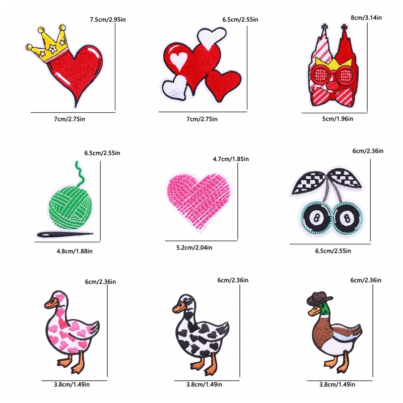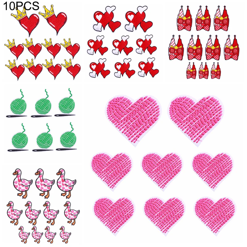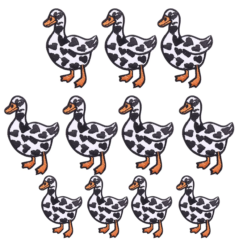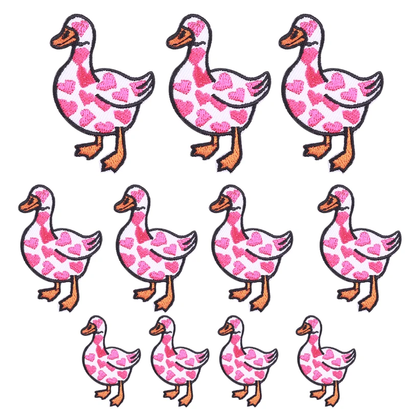 10 unids/set de parches bordados de corazón de amor de dibujos animados, parche de pato Animal, parches para planchar para ropa, sombreros, mochila, chaquetas, insignia para coser DIY