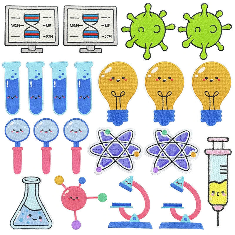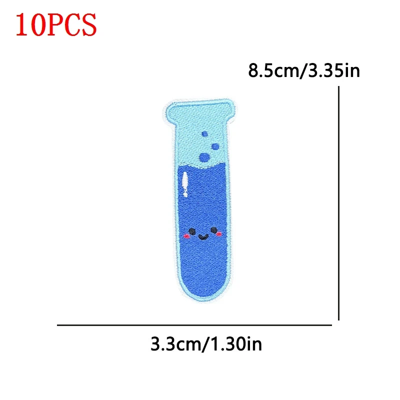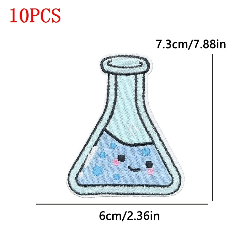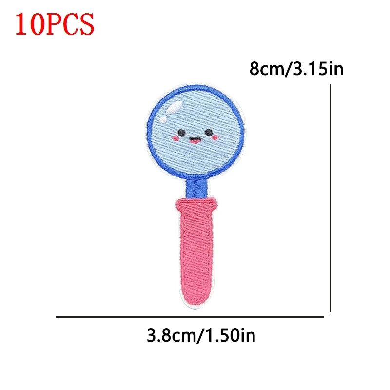 10 unids/set de parches de hierro para laboratorio químico para ropa, bombilla para coser, parches bordados, apliques de microscopio, pegatinas DIY