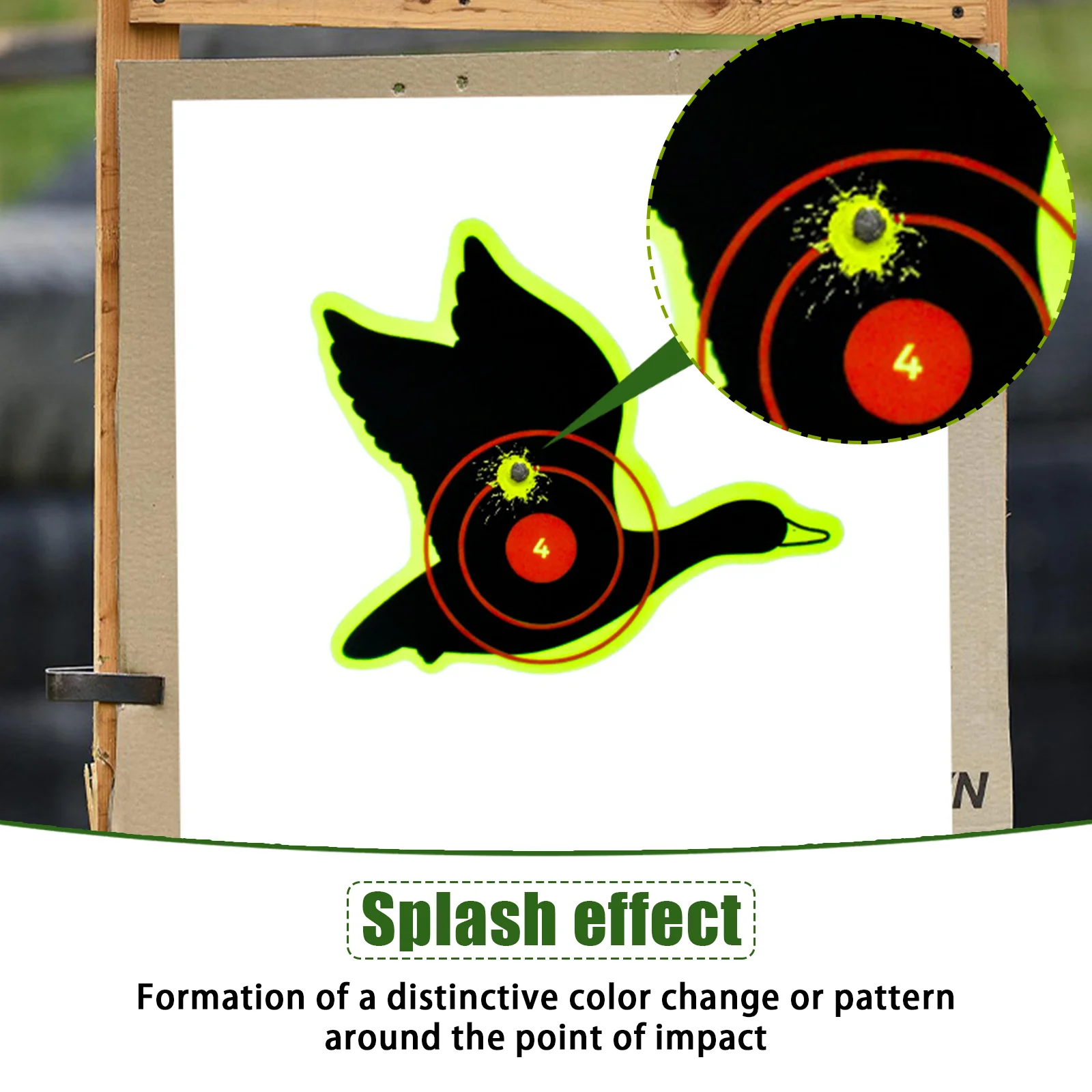 1. 【Color Splash】 Las pegatinas para objetivos con salpicaduras están diseñadas para crear una experiencia de disparo visualmente excelente.Una vez golpeado, muestra colores llamativos en los resultados de la toma, agregando un elemento adicional de diversión a su práctica de tiro.