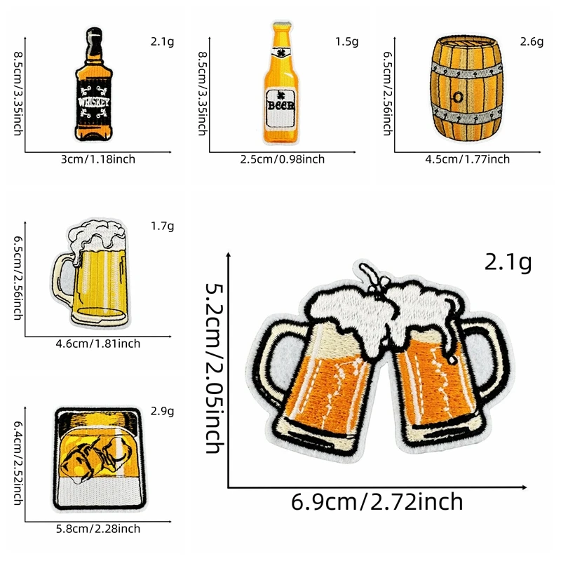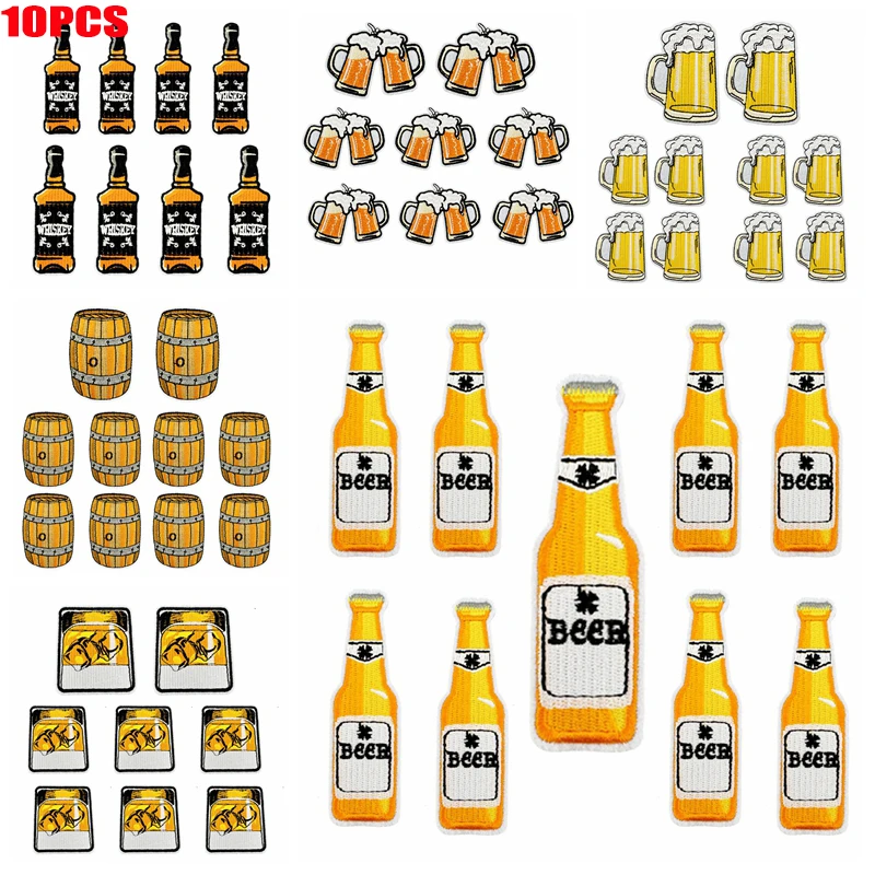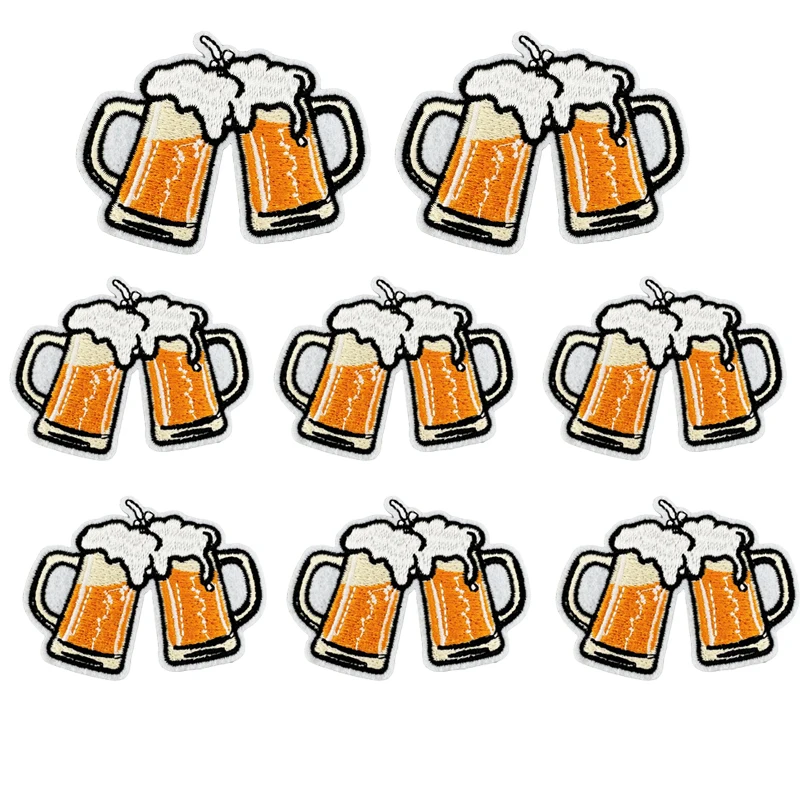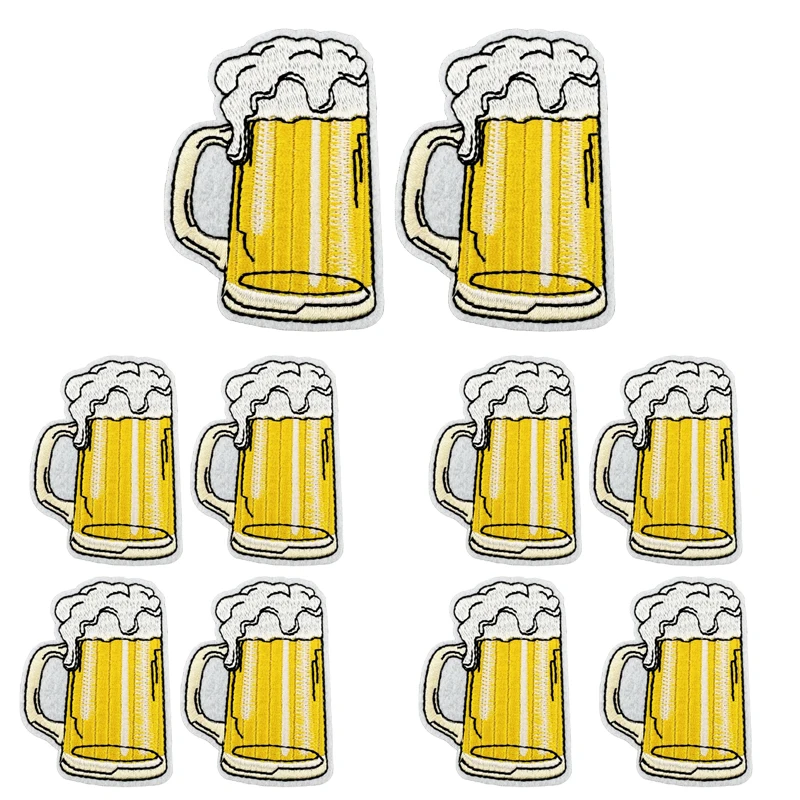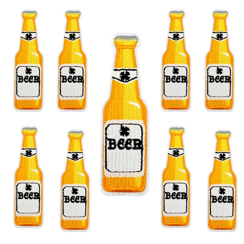 10 unids/set, venta al por mayor, parches de cerveza de dibujos animados, chaquetas, bolsas, parches bordados para coser, parches para planchar DIY para ropa, adhesivo de planchado de cerveza