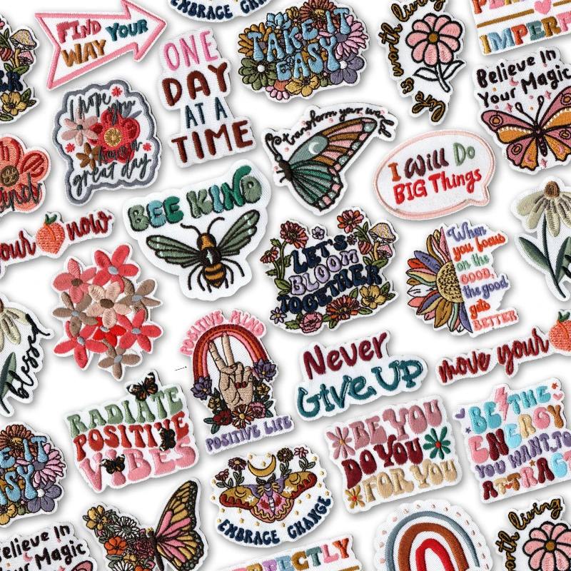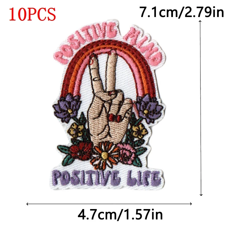 10 unids/set vibradores positivos parches para planchar para ropa parche termoadhesivo nunca se rindas parches bordados en el sombrero apliques DIY