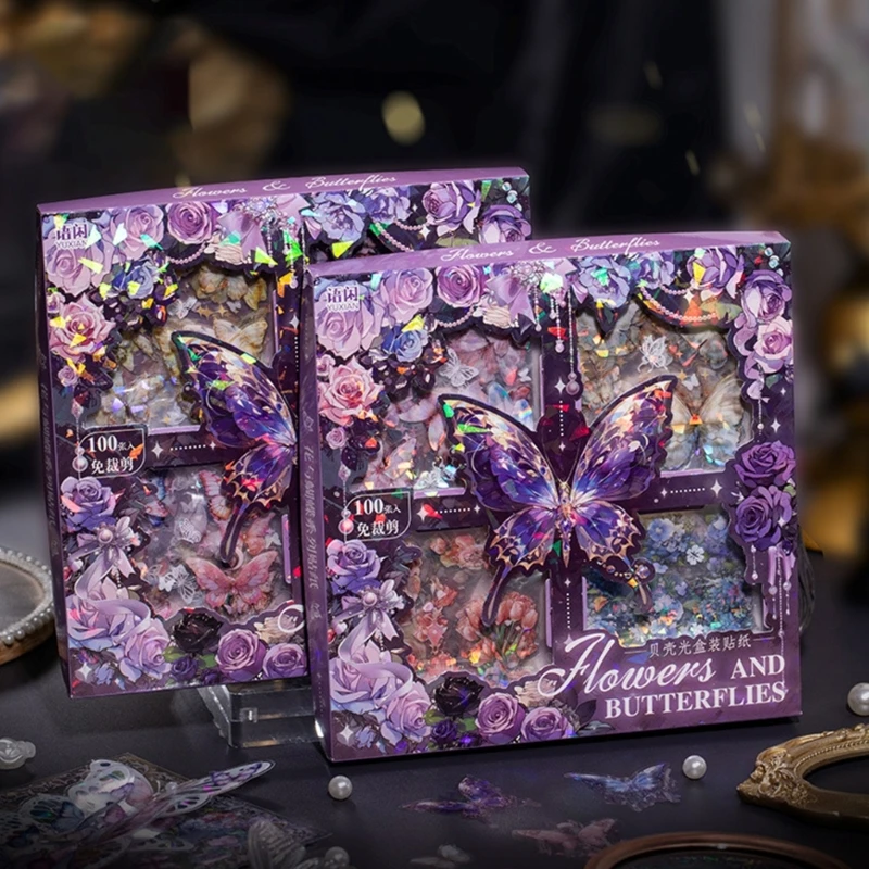 El paquete incluye:100 hojas/caja de pegatinas de mariposa