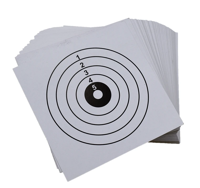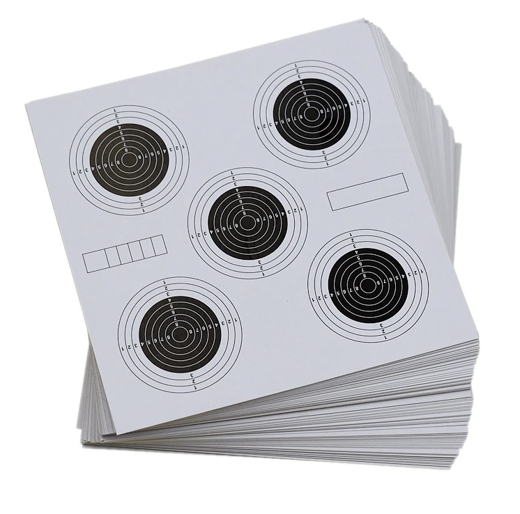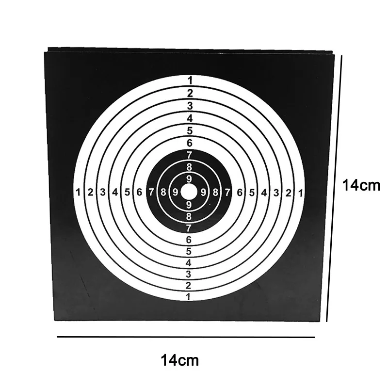 Note: 1.It is made by paper, no dangerous 2.It is should put in drying and cool places Product Name: Rifle Pistol Target Paper Material: Paper Size: 14 * 14 cm Weight: About 500g (100PCS) Package: 100* Shoot Target papers