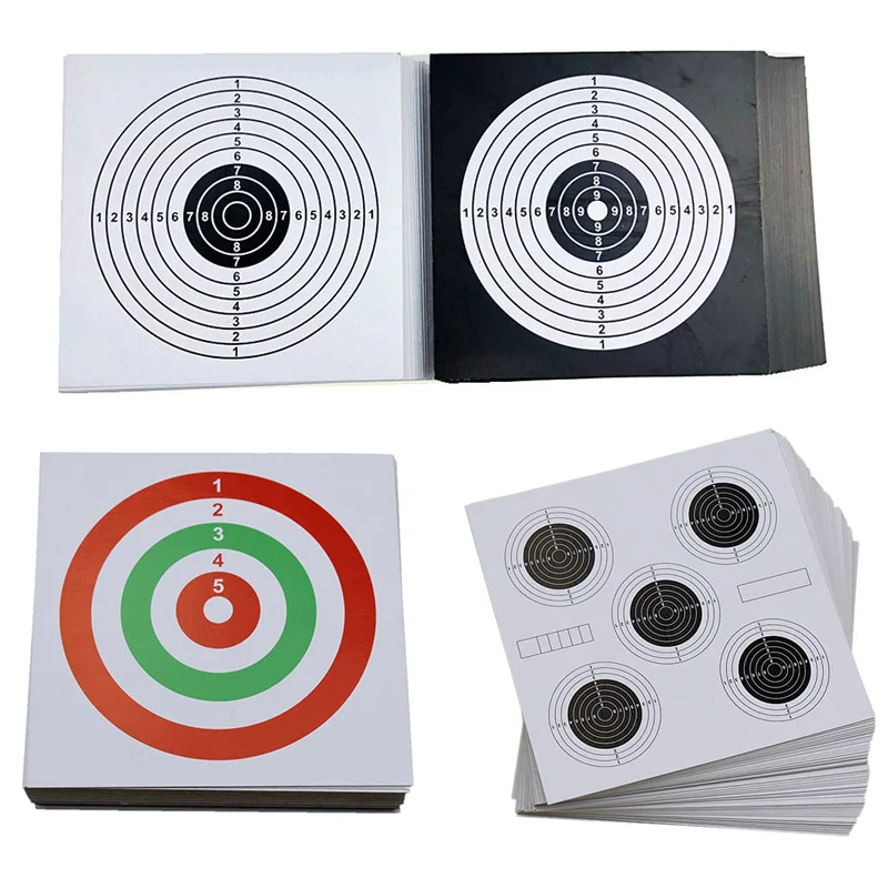 Note: 1.It is made by paper, no dangerous 2.It is should put in drying and cool places Product Name: Rifle Pistol Target Paper Material: Paper Size: 14 * 14 cm Weight: About 500g (100PCS) Package: 100* Shoot Target papers