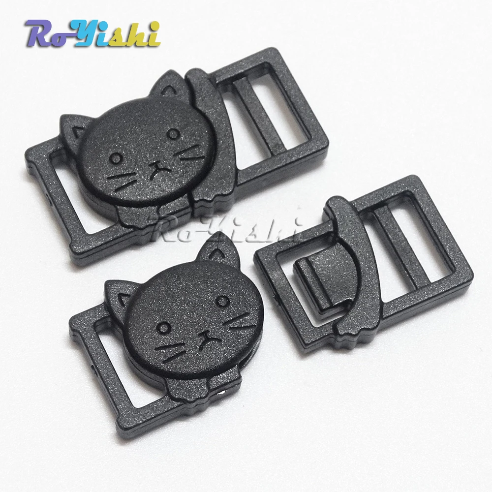 100 unids/pack 3/8 "cabeza de gato de plástico negro hebillas de seguridad separables para Collar de gato correas de Paracord accesorios de ropa