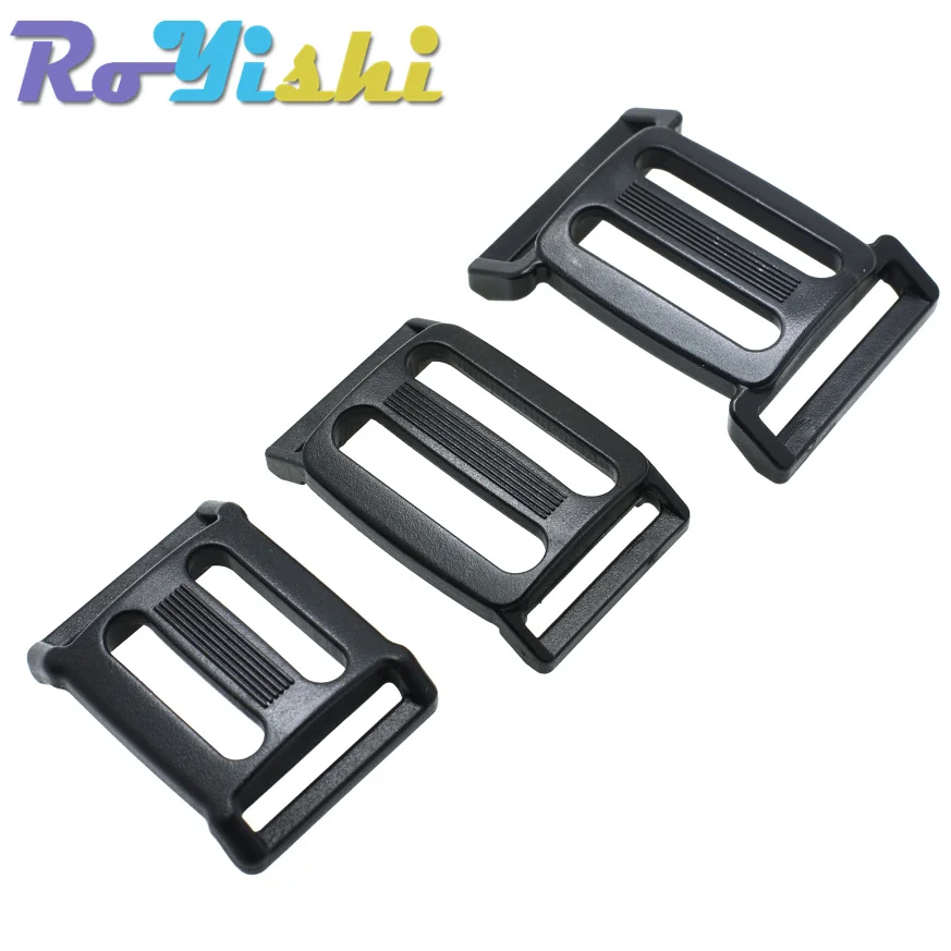 100 unids/pack plástico multifunción deslizador Tri-Glide ajustar hebilla arqueada para bolsas de mochila al aire libre correas