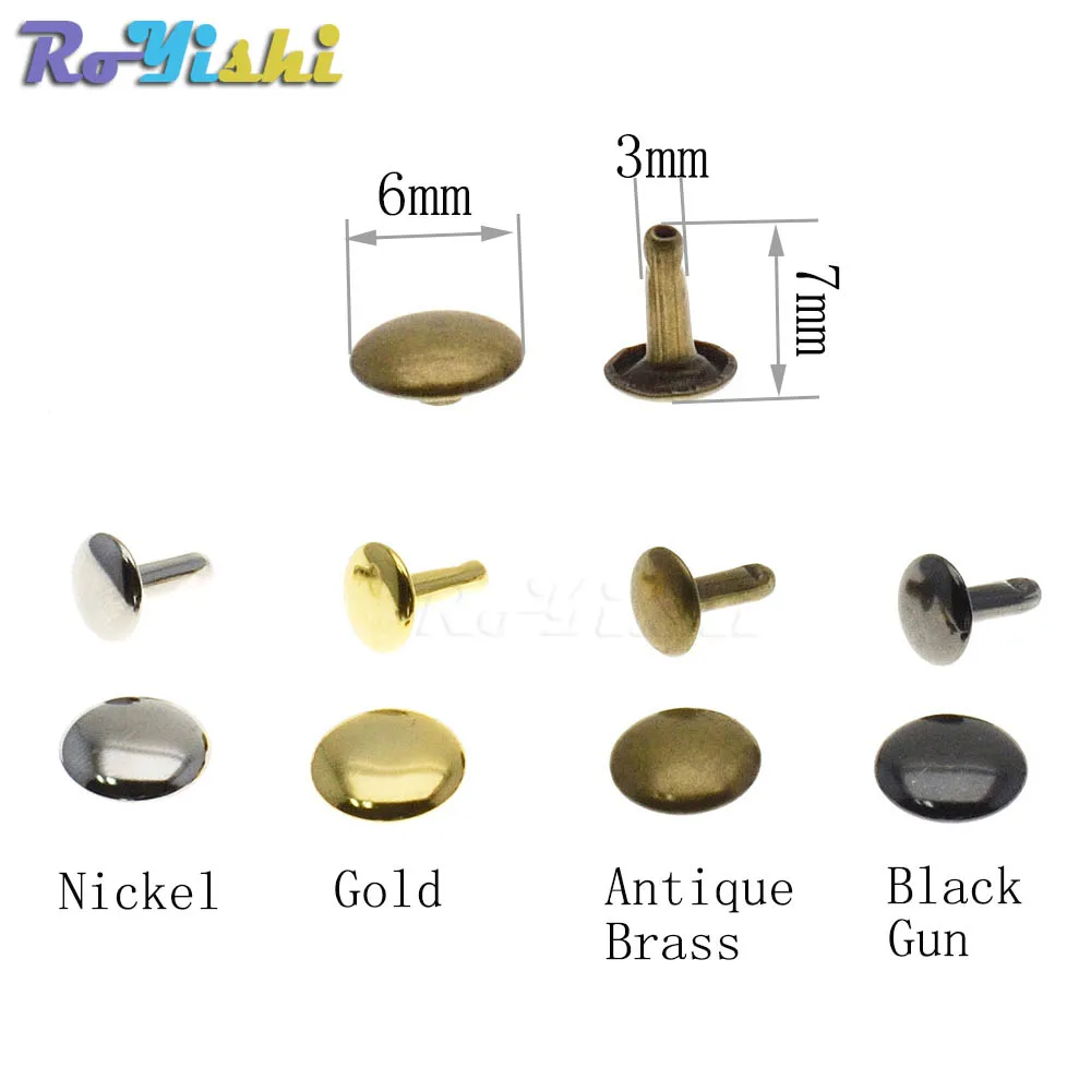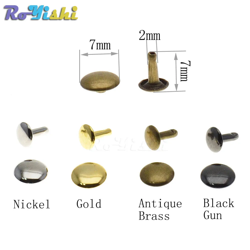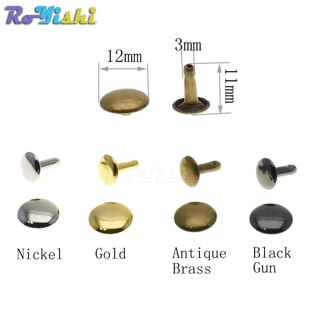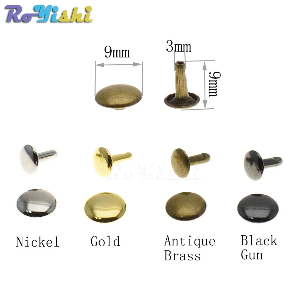 DESCRIPCIÓNEstos son el tipo de remache más popular, ideal para cualquier artesanía en cuero.Al seleccionar los tamaños de remaches, se recomienda que la longitud del vástago sea 2-3 mm más larga que el grosor combinado de las piezas de material que desea unir.4 acabados diferentes disponibles: Latón antiguo, Pistola negra, Oro, Níquel.CARACTERÍSTICASLas dimensiones reales pueden diferir ligeramenteCada unidad contiene: 1 tapa y 1 pasador.Material: chapado en hierroSe requiere una herramienta de configuración para poder utilizar el artículo.