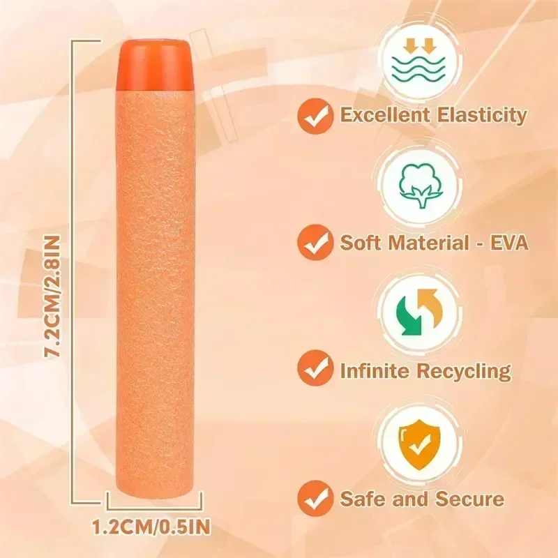 1000-50 Uds bala de cabeza redonda sólida naranja 7.2cm para juguetes pistola serie Blasters recarga dardos niños juguete pistola accesorios