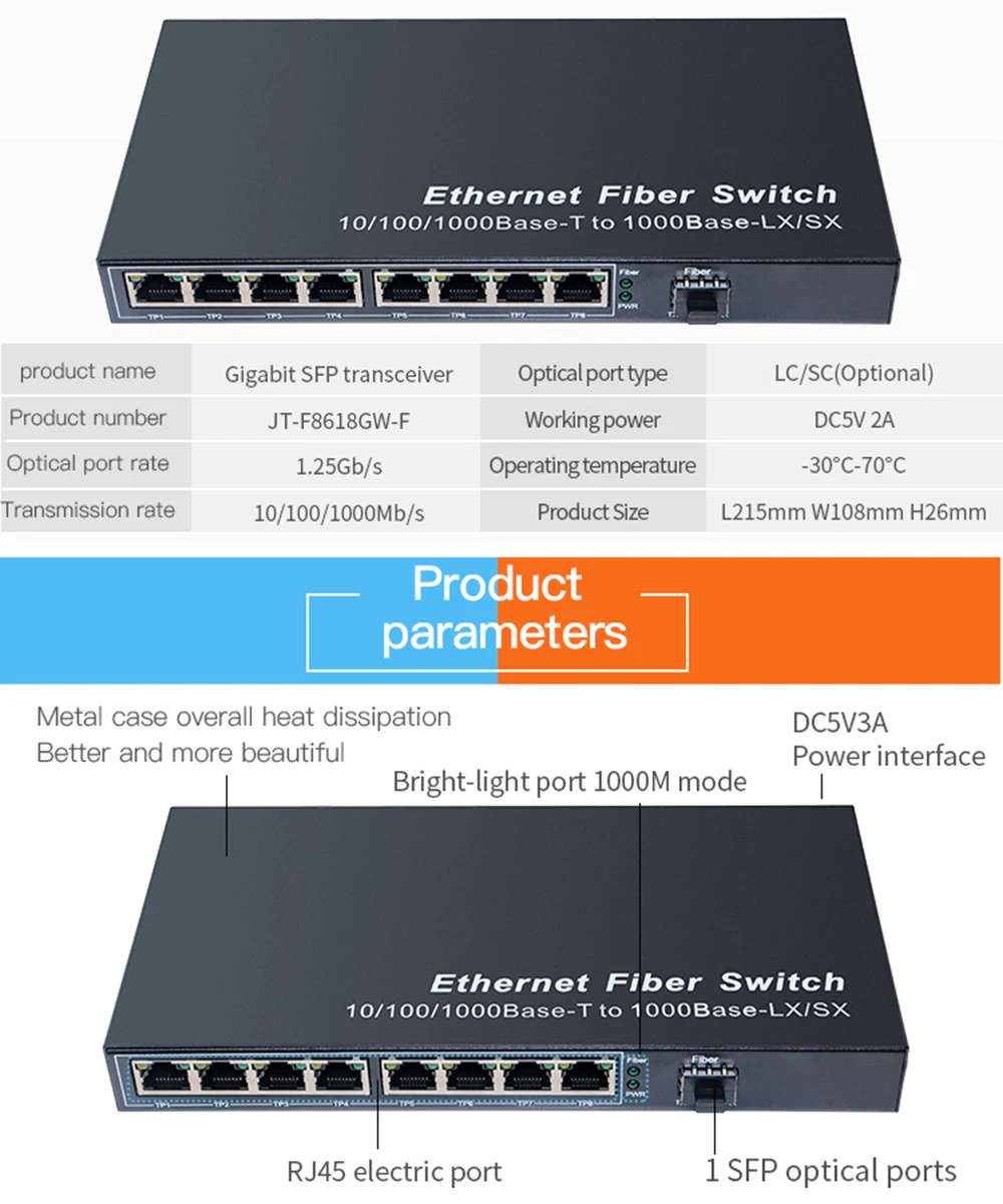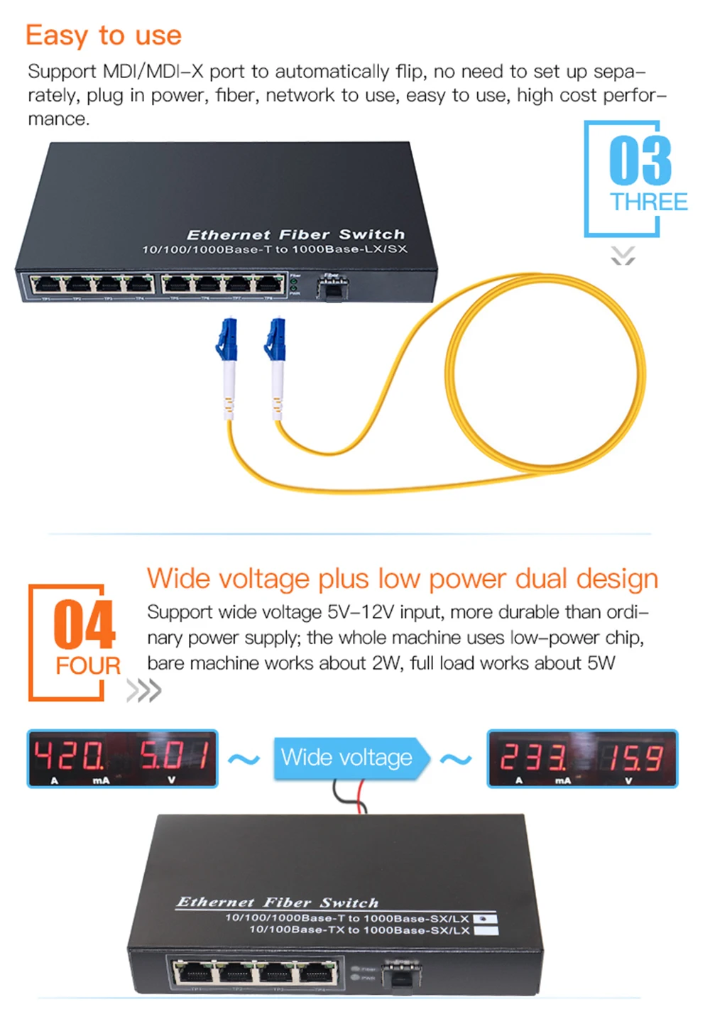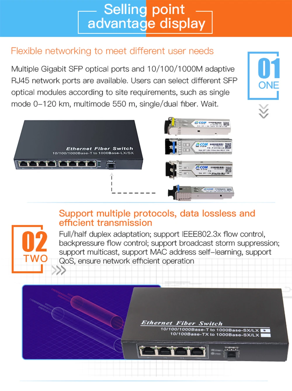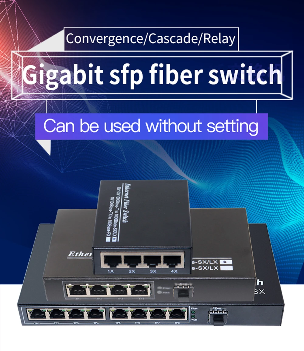 1000M 1G4E 1 ranura sfp fibra 4 8 RJ45 1G4E Gigabit convertidor de medios ópticos interruptor de red Ethernet transceptor de fibra óptica