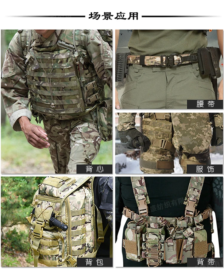 Usos principales: Mochilas, ropa, equipos tácticos y productos para exteriores.