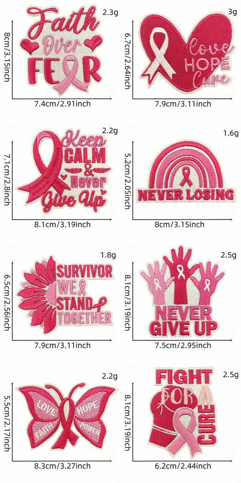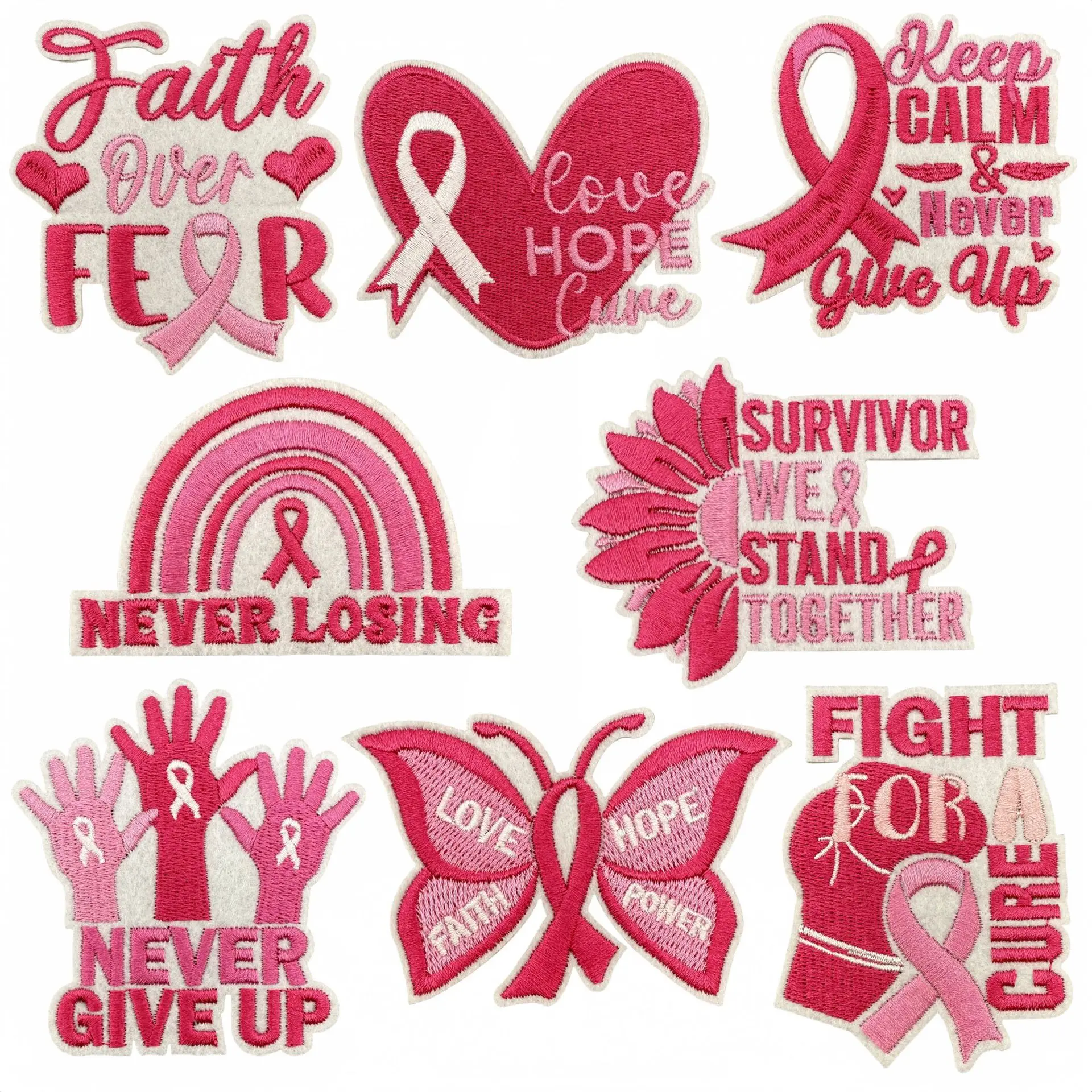 10 STKS Liefde En Hope Roze Lint Geborduurde DIY Cartoon Patch Opstrijkbare Patches Voor Kleding Jassen Jeans Hoeden Borduren Badges