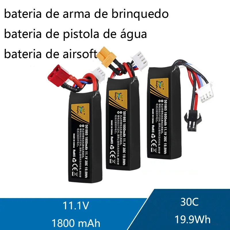 Batería LiPO recargable de 11,1 V y 1800 mAh para pistola de agua, pistola de aire suave, accesorios para pistola de juguete 30C501865 BateríasNota: Para evitar disputas innecesarias, preste atención al tamaño y peso de la batería al realizar un pedido, que se indicó en la descripción de nuestro producto.