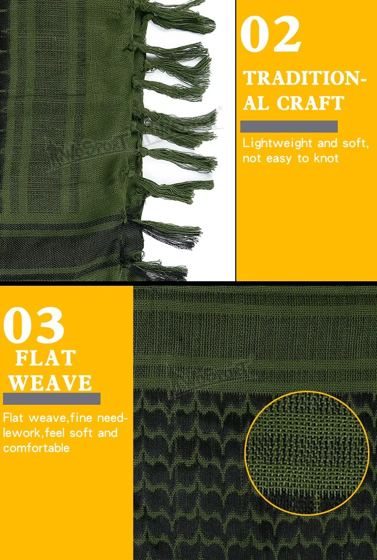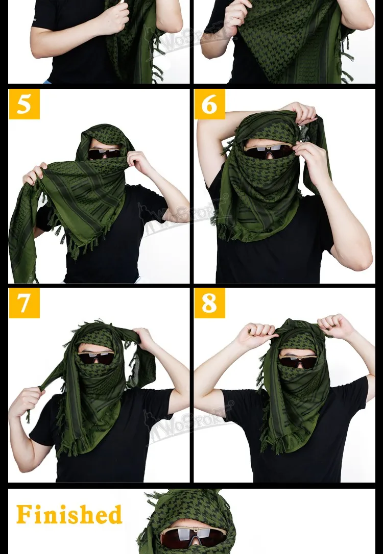 4. Borlas unidas al extremo de la bufanda Shemagh.