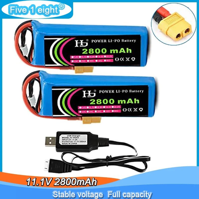 - ★ Voltios: 11,1 V; Capacidad: 2800 Mah; Enchufe de descarga: conector XT60, descarga de 40 C