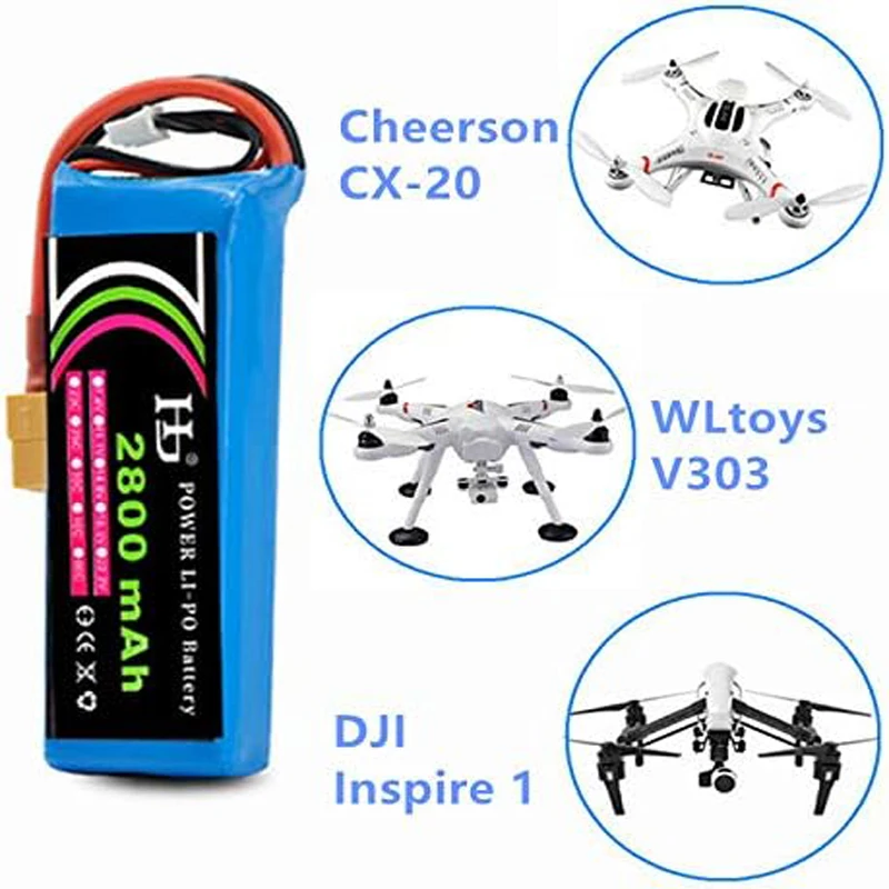 - ★ Batería de repuesto para drones de 11,1 V 2800 mah, alta capacidad 2800 mah, batería de repuesto de alta calidad apta para Cheerson CX-20, DJI Inspire 1, WLtoys V303 RC DRONE (solo si el voltaje, la dimensión y el enchufe coinciden, entonces encajará)