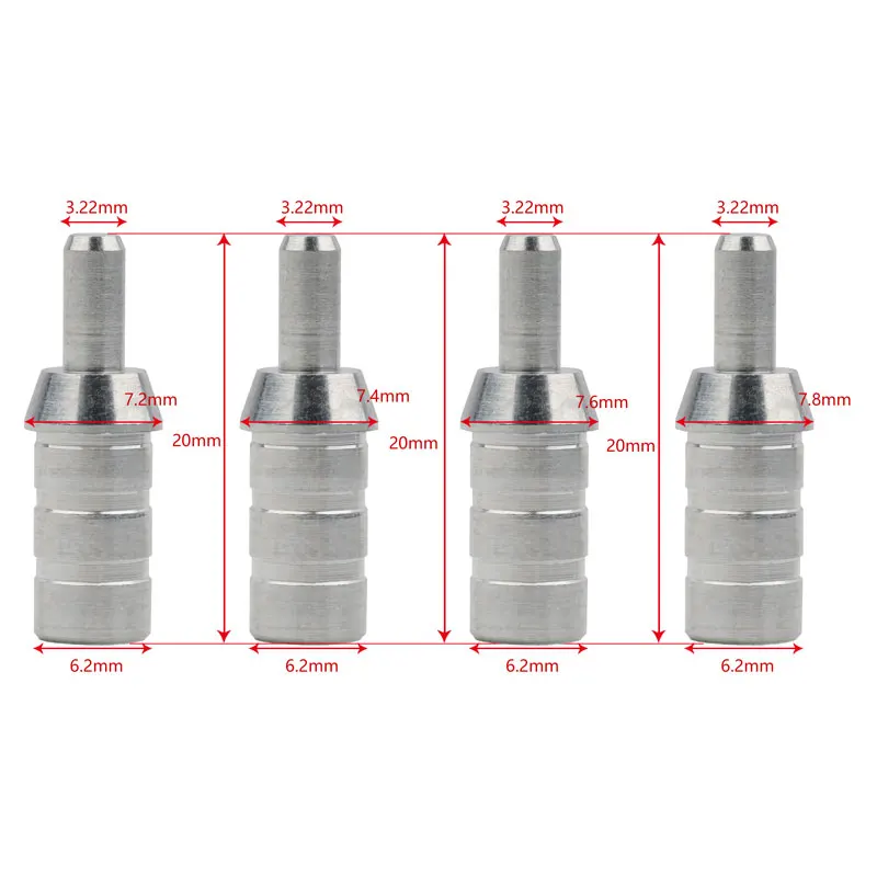 Nombre: Pin de nacimiento de flechaColor: PlataMaterial: aleación de aluminioDiámetro interior: 6,2 mmDiámetro exterior: 7,2/7,4/7,8 mmPara: Flecha de carbono, Flecha de aluminio,