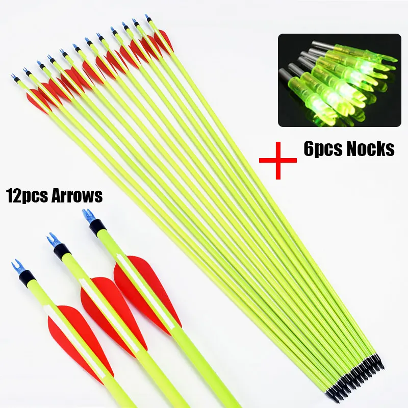 Arco compuesto de caza de 12, pernos de flechas de carbono de 30 pulgadas, flechas reemplazables + 6 culatines de flecha brillantes LED de ID6.2mm de 6 piezas