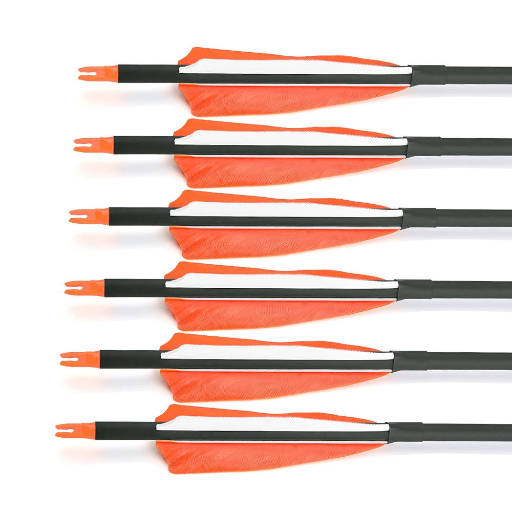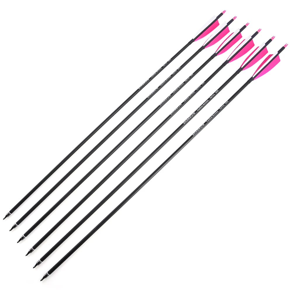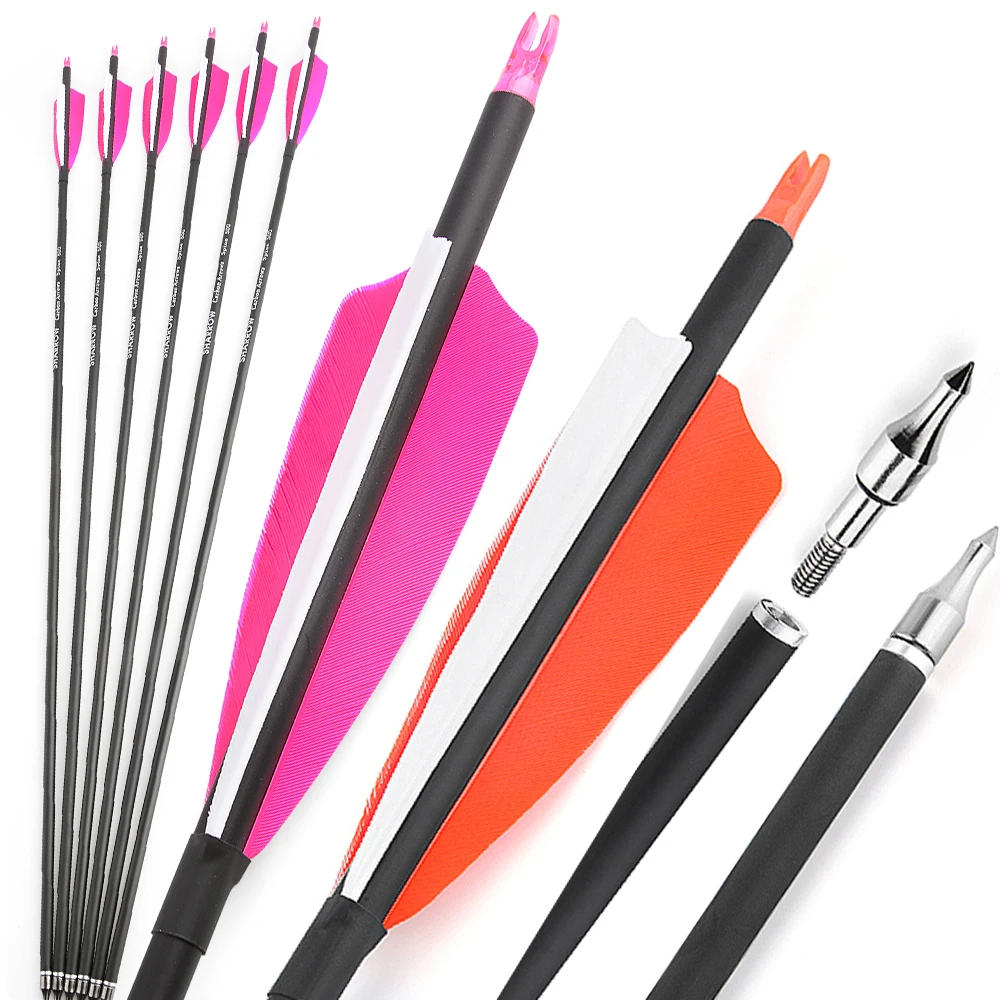 12 Uds. Columna de tiro con arco de 31,6 pulgadas 500 mezcla de flechas de carbono 4 pulgadas pluma de pavo colorida puntas de flecha de 100 granos para tiro con arco