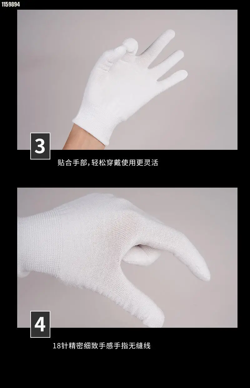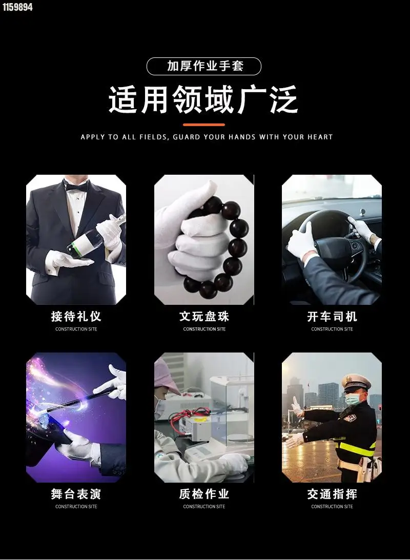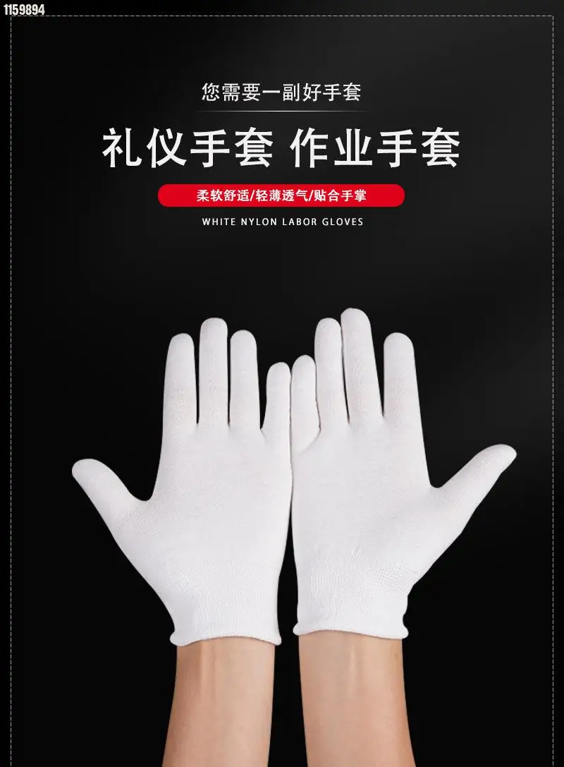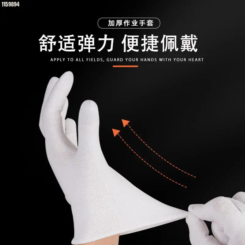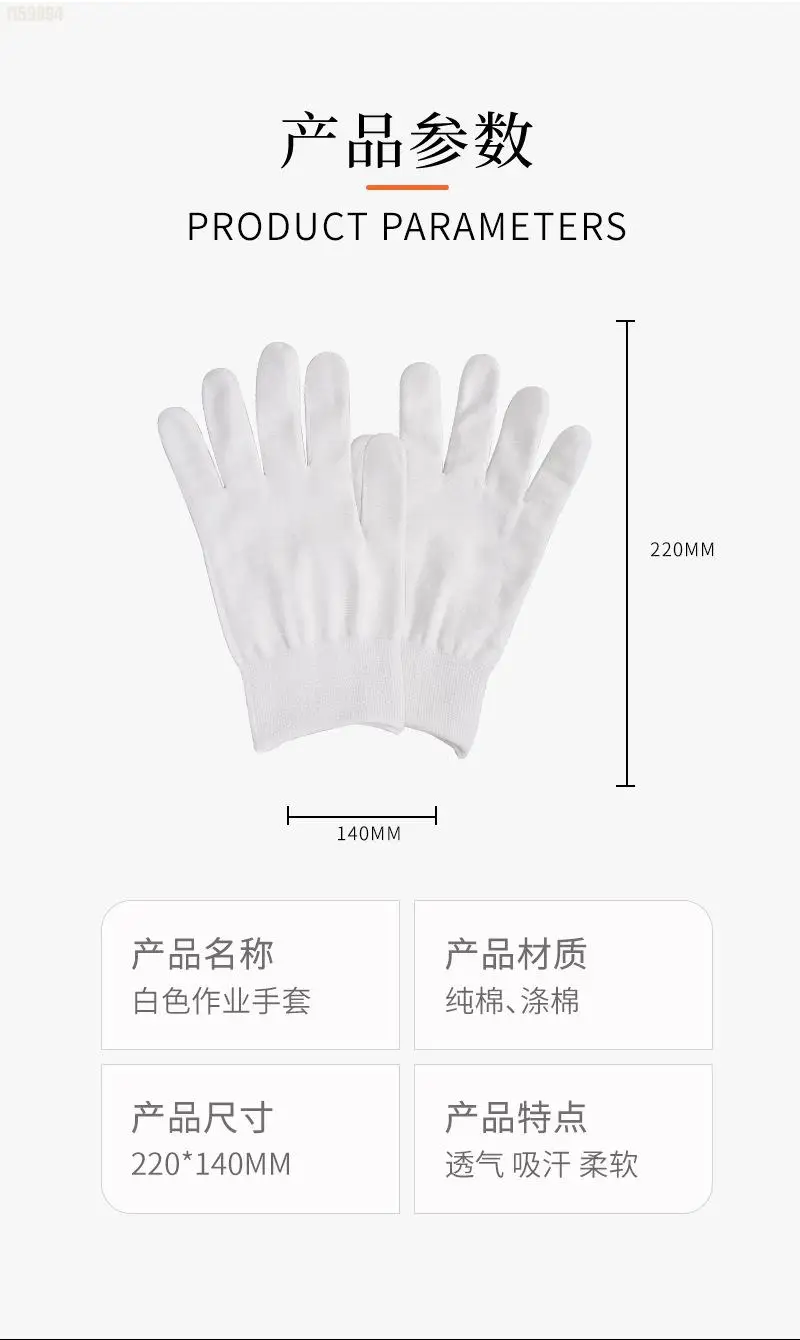 12 Uds. Guantes blancos para tareas, etiqueta de juego Wen, guantes de algodón para tareas, protección laboral, guantes de tela para el sudor, venta al por mayor transfronteriza