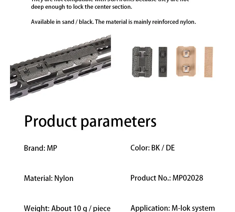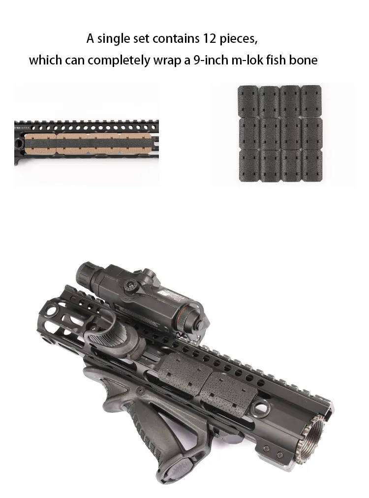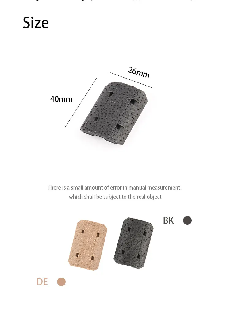 Diseñadas para rieles M-LOK, estas cubiertas brindan un ajuste seguro, mejorando la funcionalidad de su pistola de juguete airsoft.