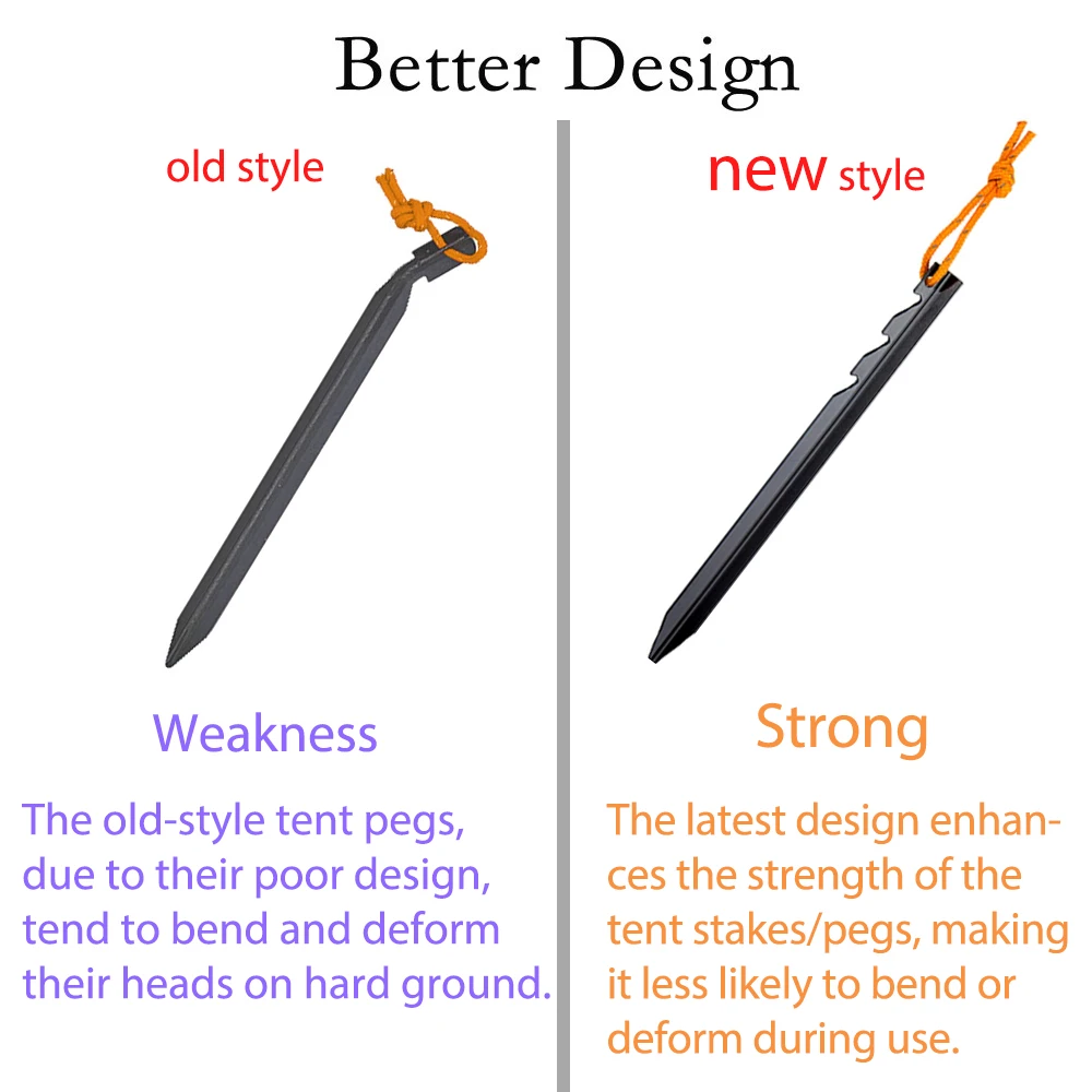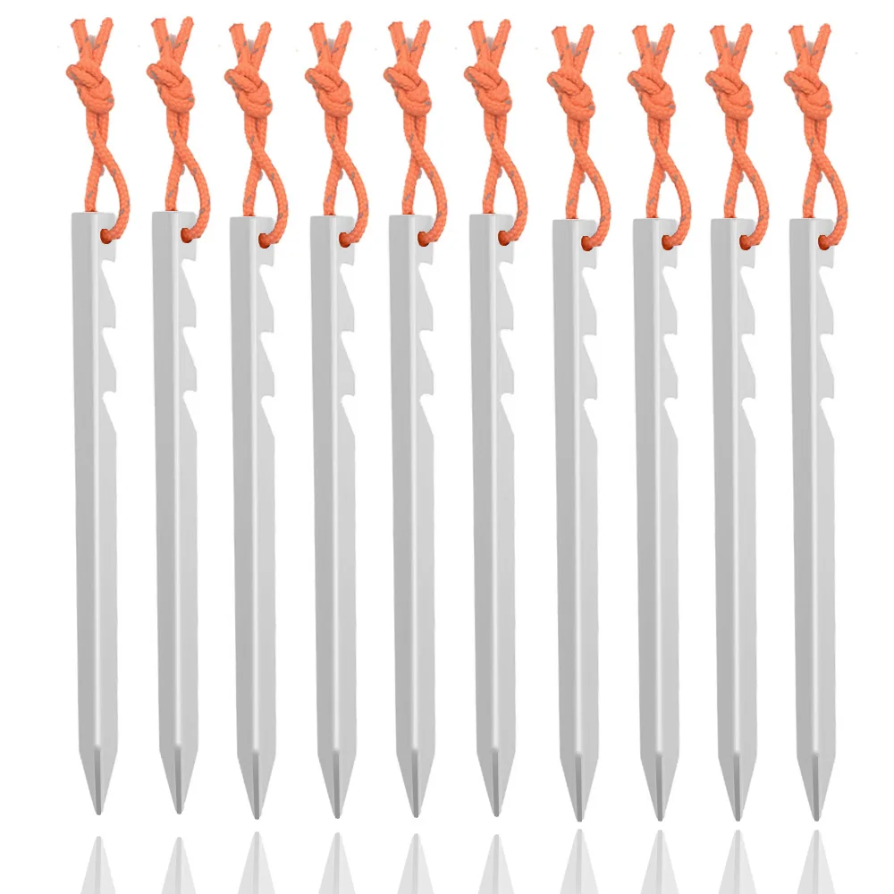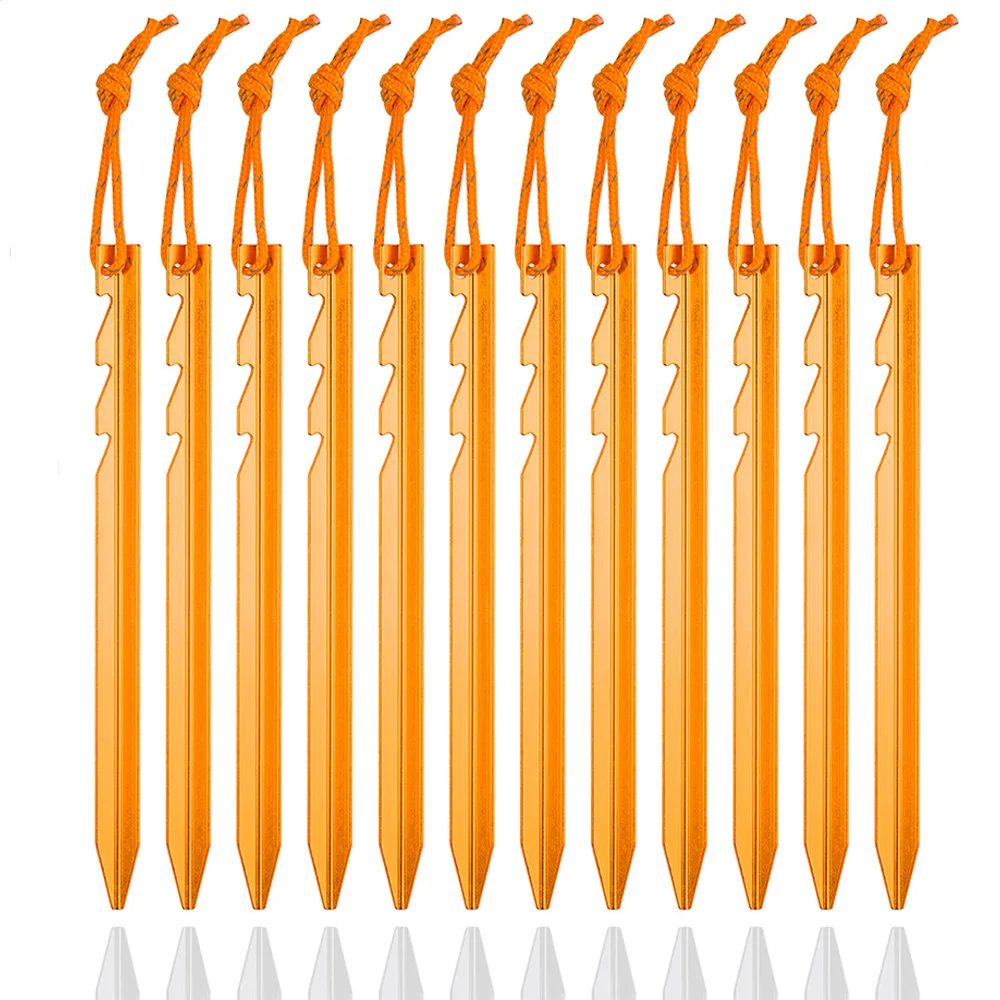 Las clavijas para acampar están hechas de una aleación de aluminio resistente y de alto rendimiento de alta calidad, cada longitud de 7 pulgadas con un peso de 13 g, livianas pero resistentes, pueden soportar HB 110 N2 y resistencia a la torsión de 1000 Nm con 3 bandas alturas, 3 pestillos - Los puntos minimizan el apalancamiento en el inserto en terrenos más duros, hacen que el cuello de la varilla sea más estable y fuerte, no es fácil de doblar.Cada inserto viene con un cordón reflectante para mejorar la visibilidad por la noche, además de facilitar la extracción de los tapones del piso y el orden.Ideal para practicar senderismo, acampar, planificar, hamacas voladoras de lluvia, acampar, hacer mochileros, hacer trekking, andar en bicicleta, pescar, cazar, viajar, playa, jardín, parque, actividades al aire libre y asegurar algo al suelo.