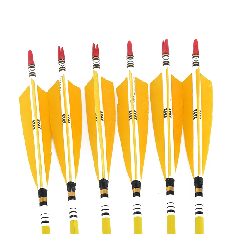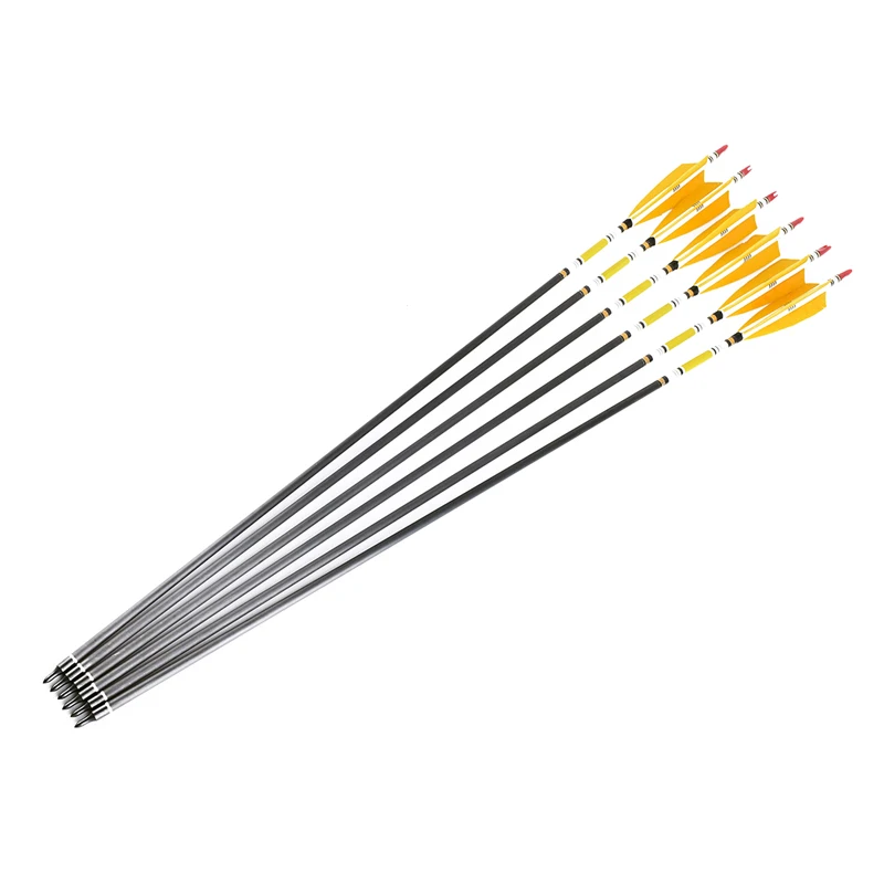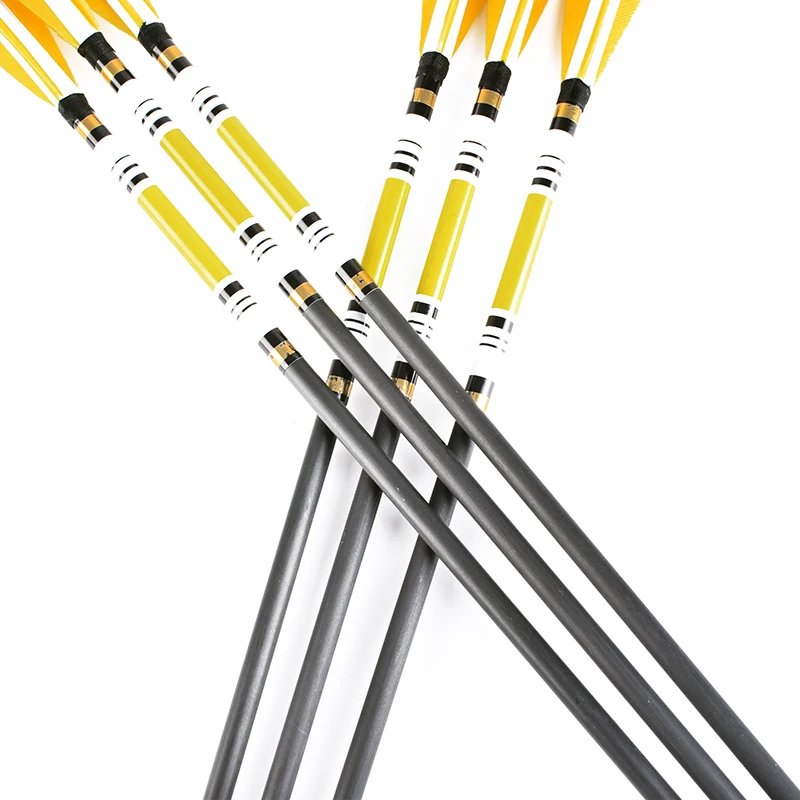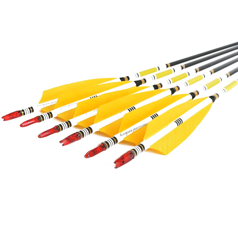 Tiro con arco de caza, 12 unids/lote, 80cm de longitud con flechas de carbono de alta calidad, pluma de pavo amarilla para arco compuesto de 20-50 libras
