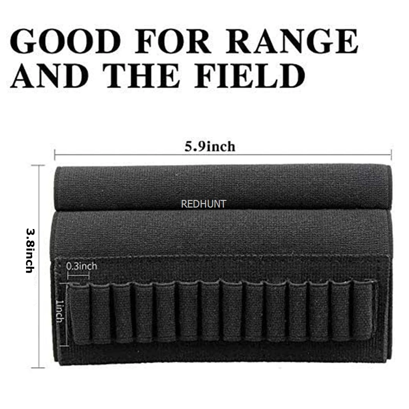 Esta bolsa para municiones tiene un resistente lazo elástico para ajustarla al tamaño de su stock.
