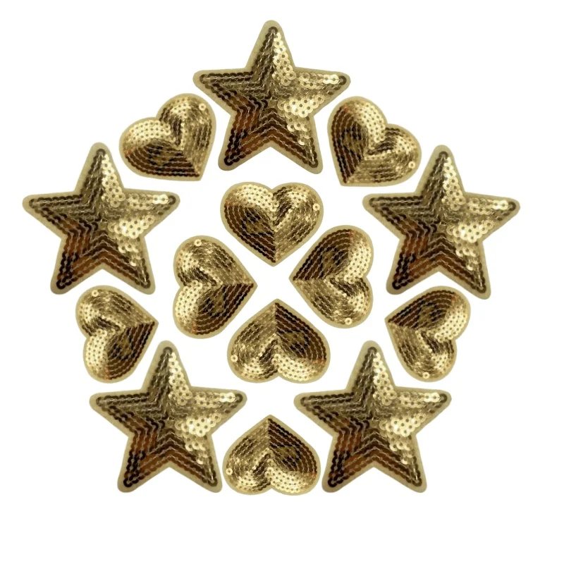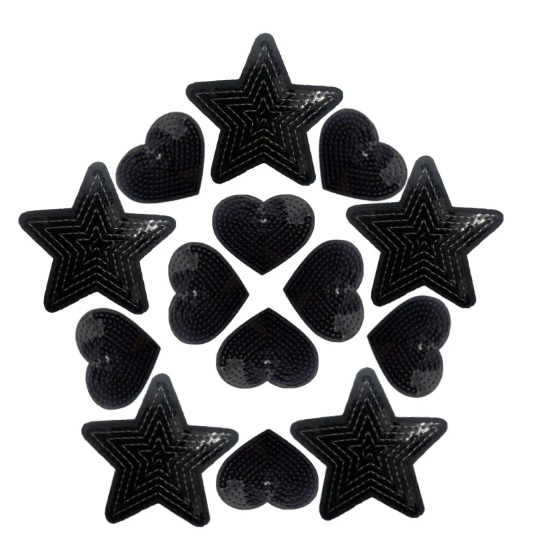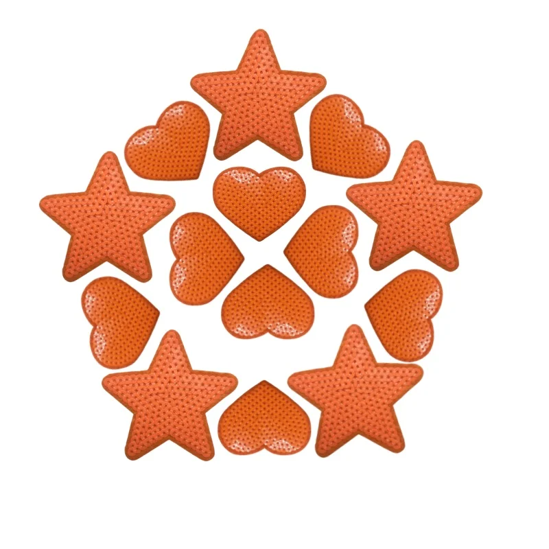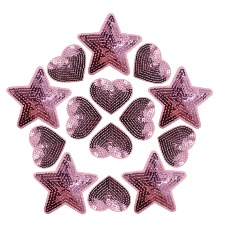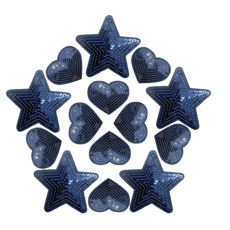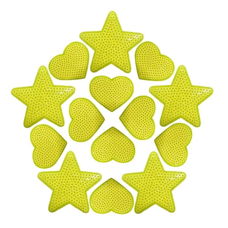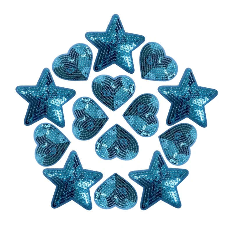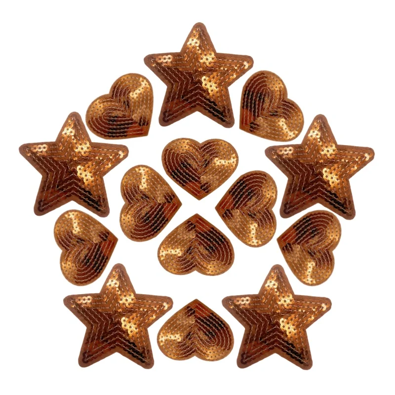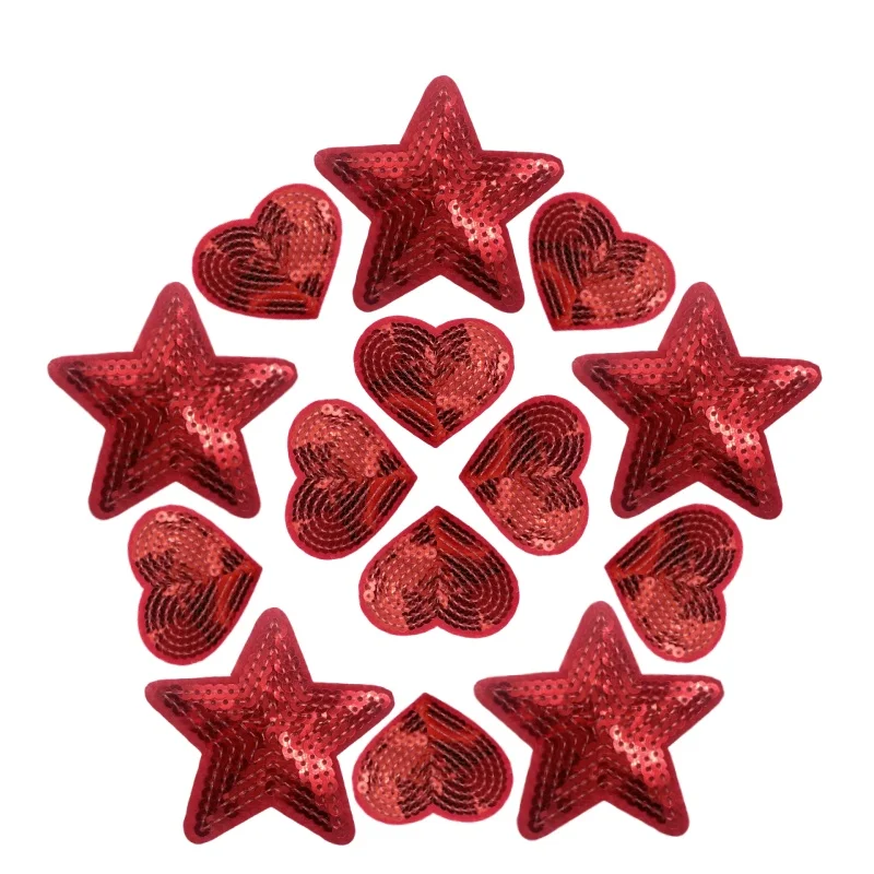 14 unids/lote de parches de estrella de lentejuelas para planchar, parches bordados de corazón para coser, apliques DIY, apliques de colores vivos brillantes para ropa