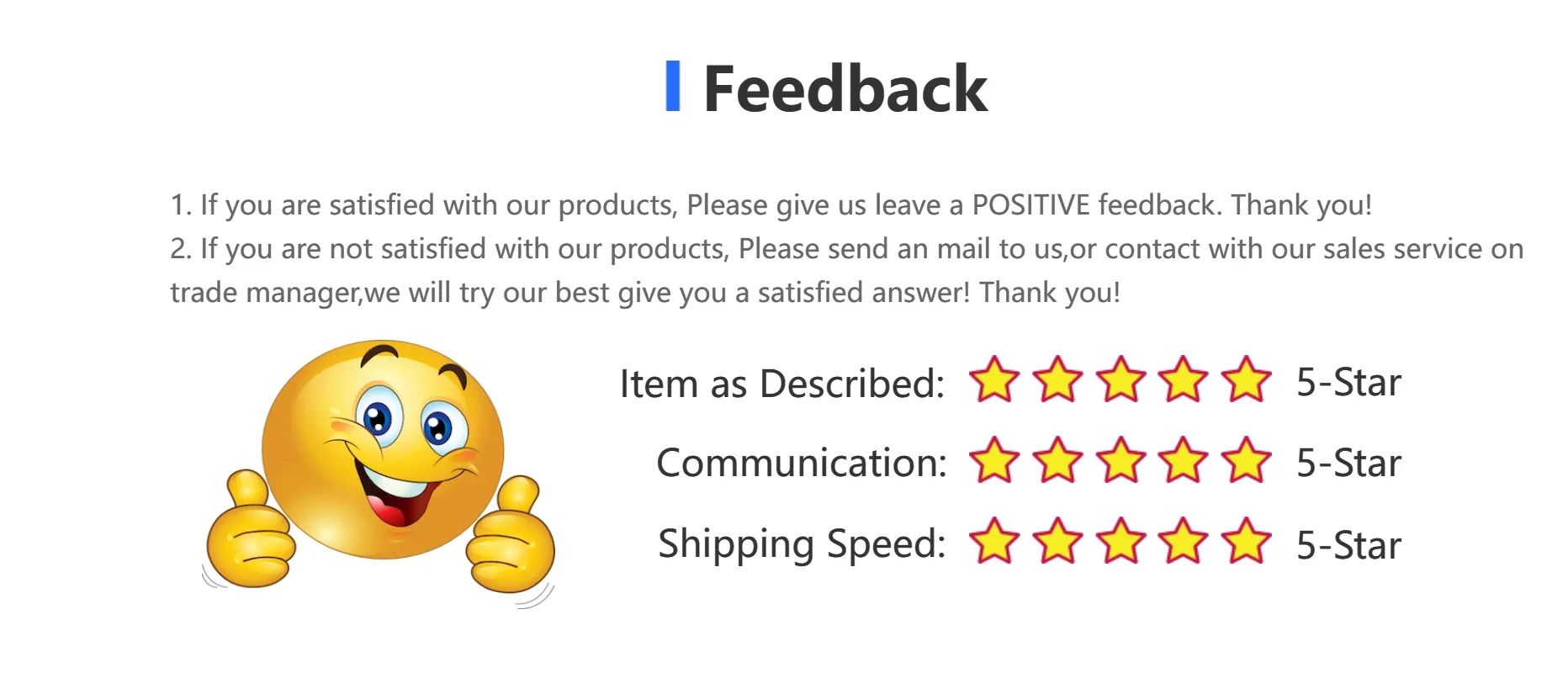 1.Todos los productos serán revisados cuidadosamente antes de enviarlos.