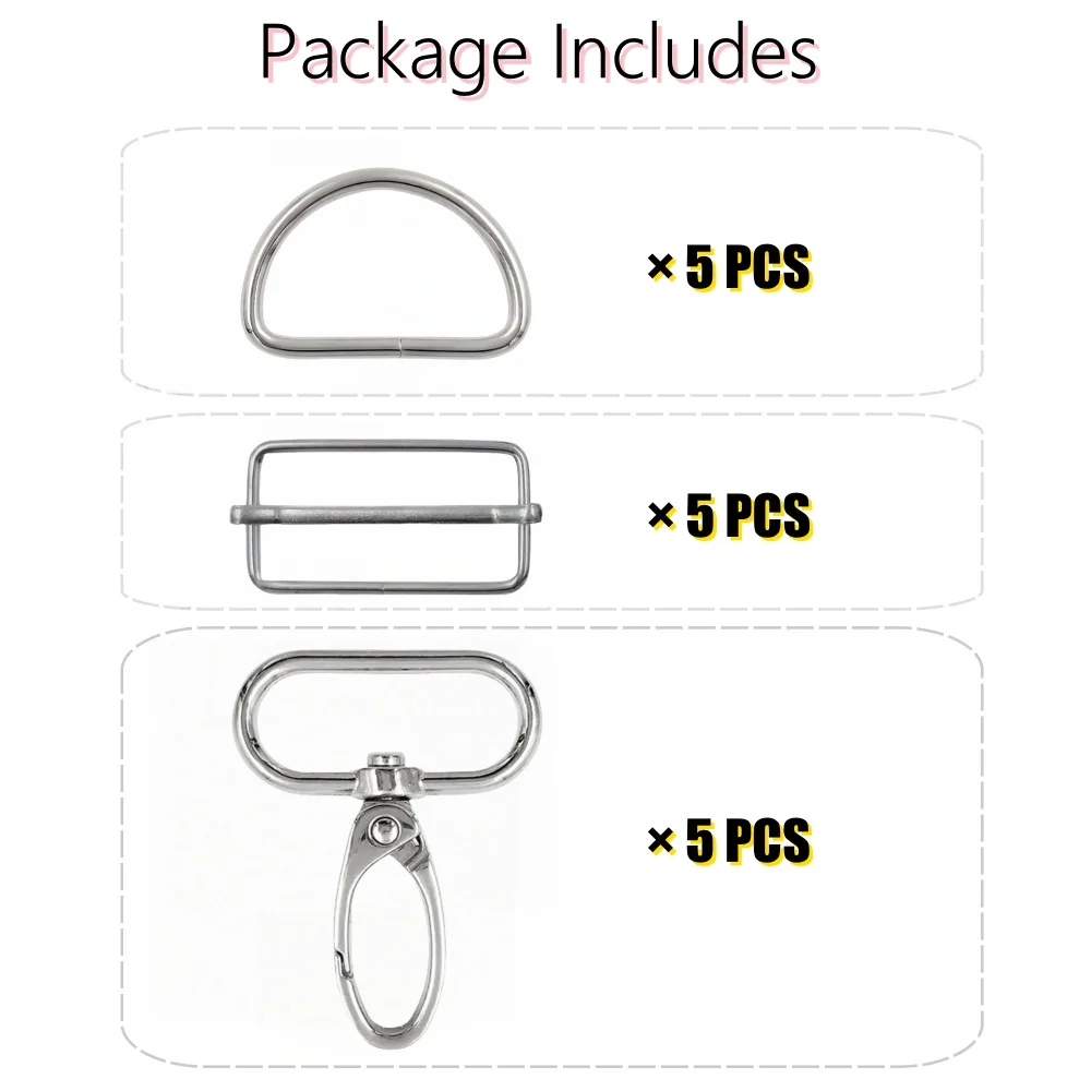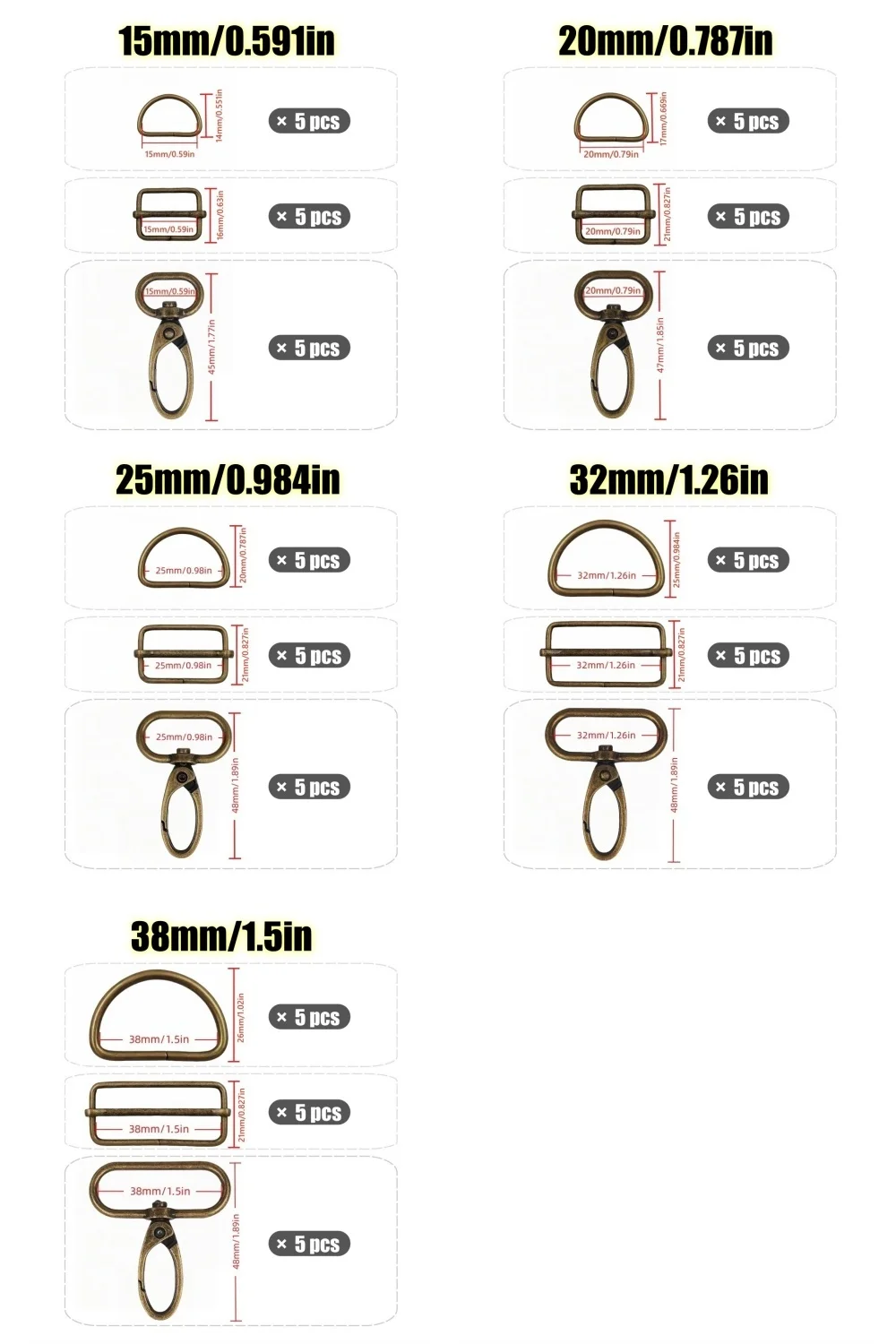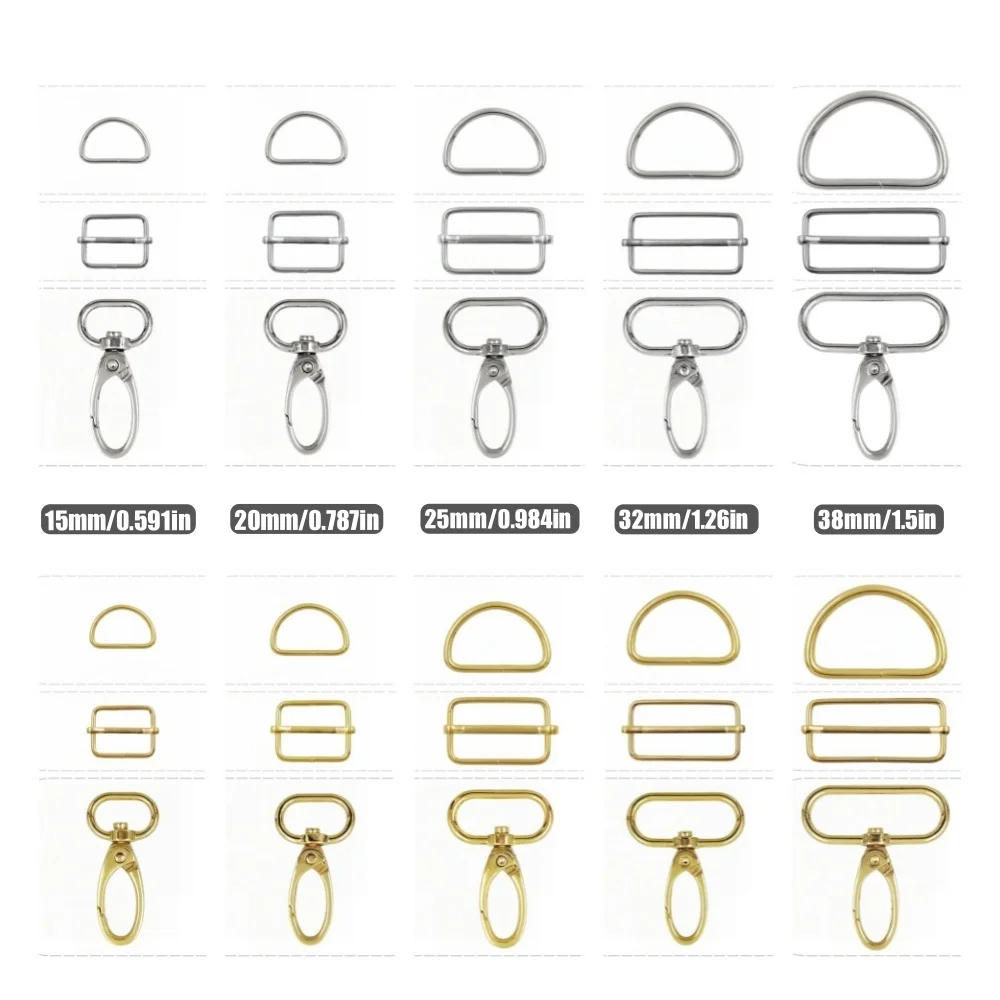 15 unids/set RoYishi juego de hebilla de cinturón de Metal de colores mezclados, hebilla de anillo en D, hebilla de ajuste deslizante Rectangular, hebilla de gancho giratorio