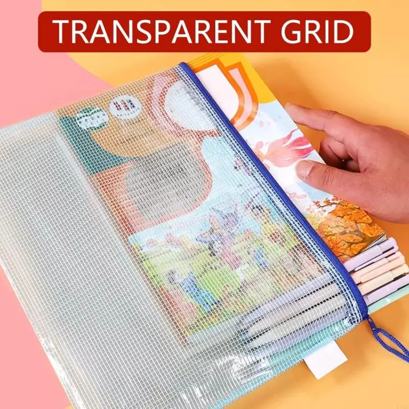 Las superficies texturizadas de malla transparente evitan resbalones, mientras que la cremallera reforzada garantiza un sellado a prueba de polvo, manteniendo el papel de tamaño carta (334x235 mm) organizado y de fácil acceso.