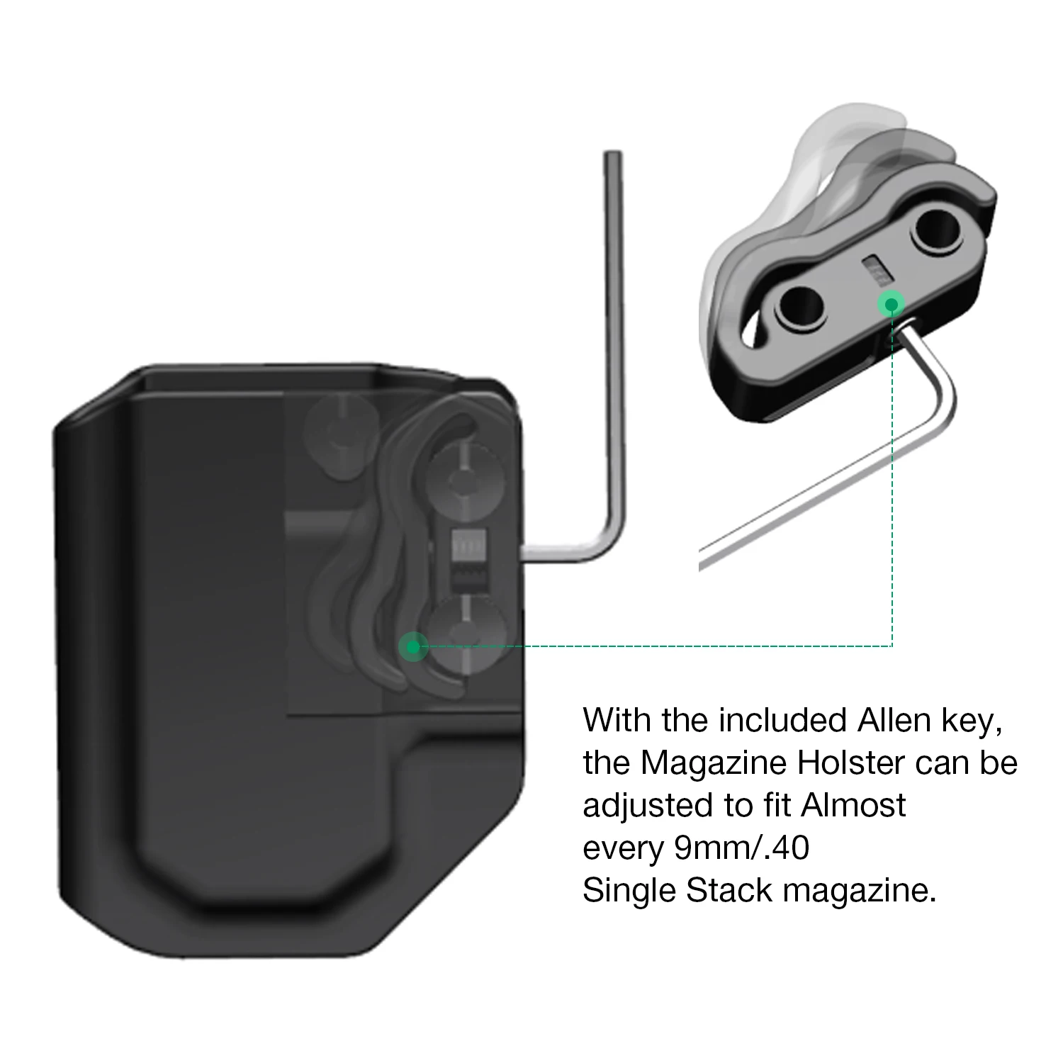 【MDS ajustable】 Con la llave Allen incluida, el MRD se puede ajustar para adaptarse a prácticamente cada cargador de una sola pila de 9 mm.