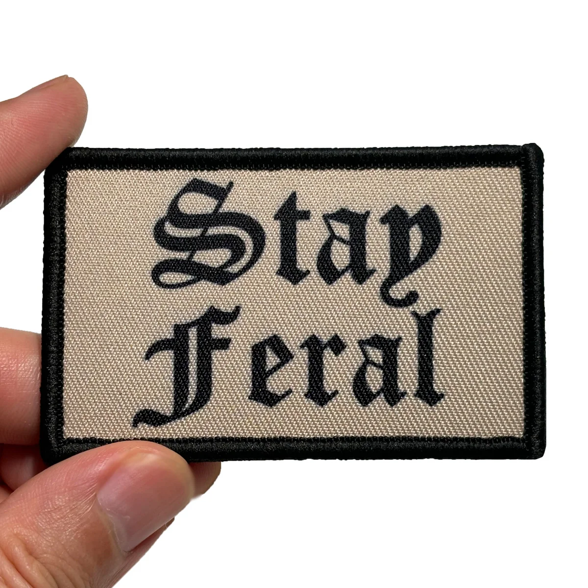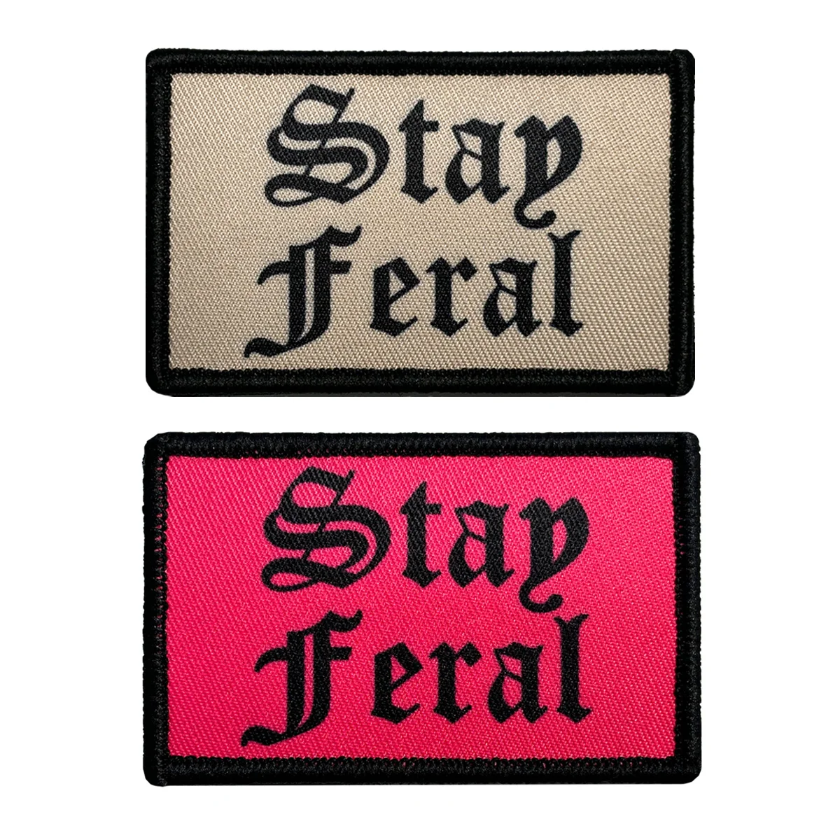 1pc Stay Feral niñas y niños meme 2 "x 3" parche moral con gancho y respaldo de bucle