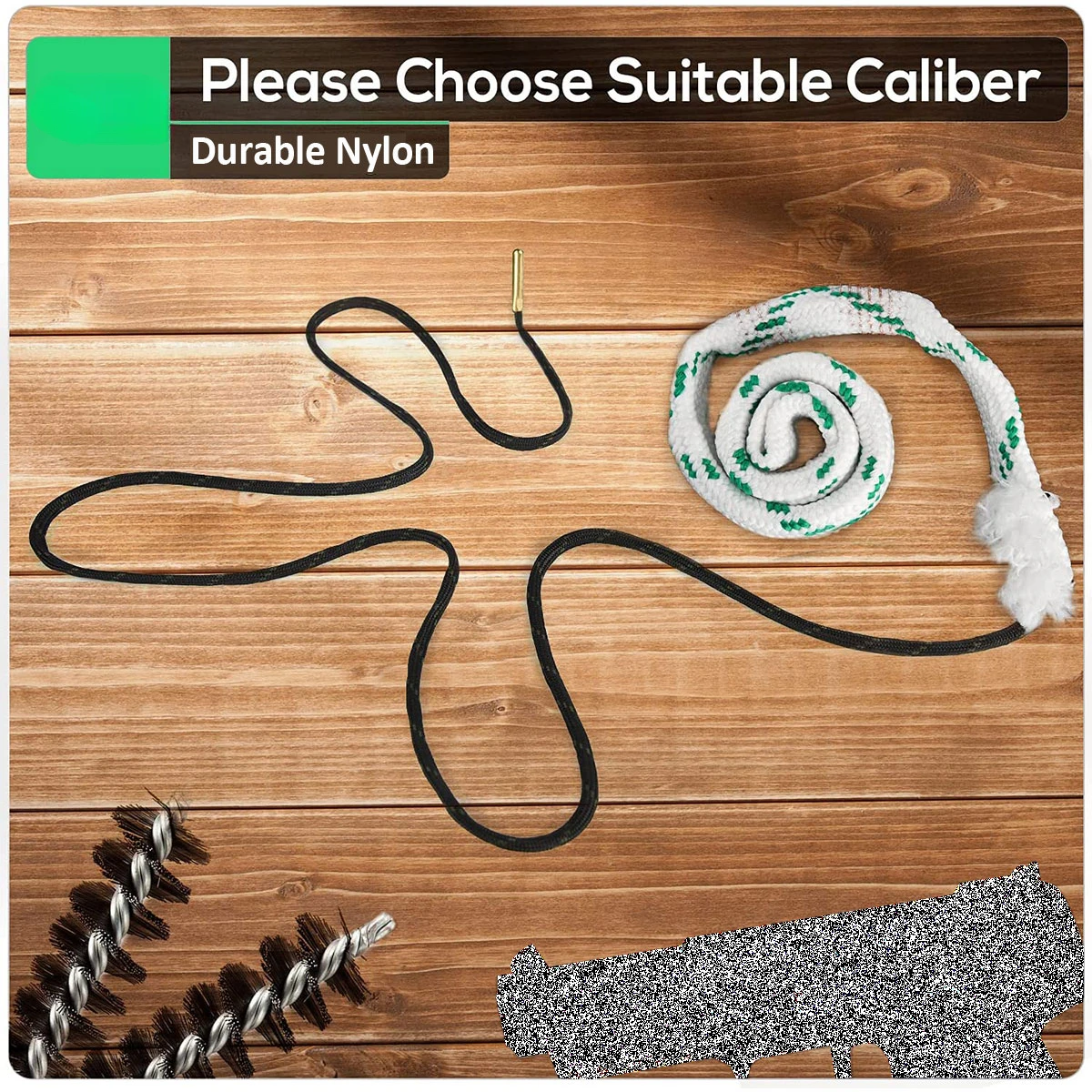【Solventes de ABS】 La cuerda de nailon absorbe bien el solvente del cepillo de limpieza de la pistola y no hay metal expuesto para dañar los rifles o la corona sensibles.