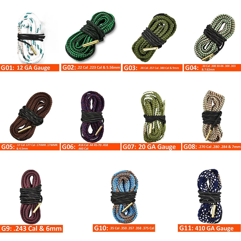 1 Uds. Cuerda limpiadora de barril de pistola de orificio reutilizable serpiente de barril de caza para 5,56mm/.223/.22/9mm/cal.380/12 GA/.Rifle 30 Cal/.308