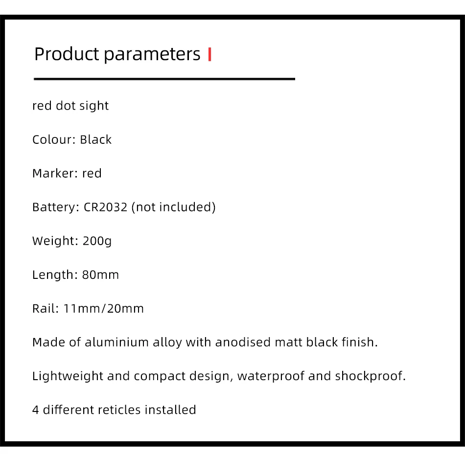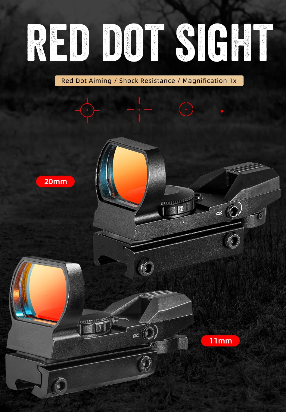 1x22x33mm Multi 4 retícula Electro Red Dot mira telescópica con montaje para riel de 20mm punto rojo nuevo