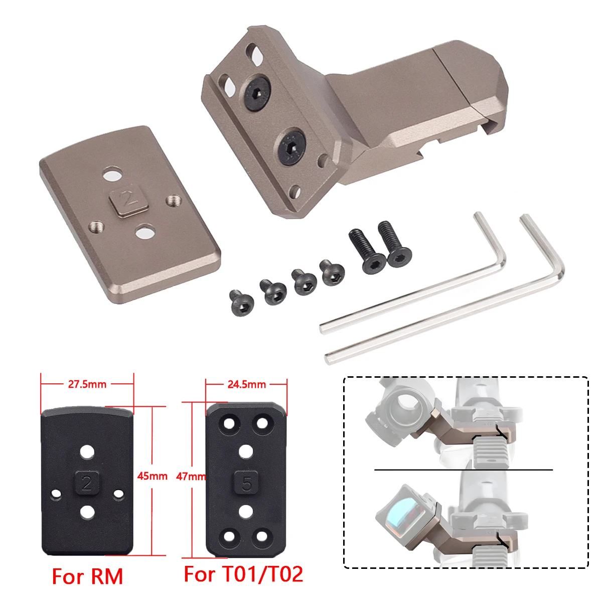 2,26" 2,91" UNIDAD Fast Riser Montaje aumentado T01 T02 Red Dot Sight Scope 45 ° Base de soporte universal para óptica de soportes laterales compensados