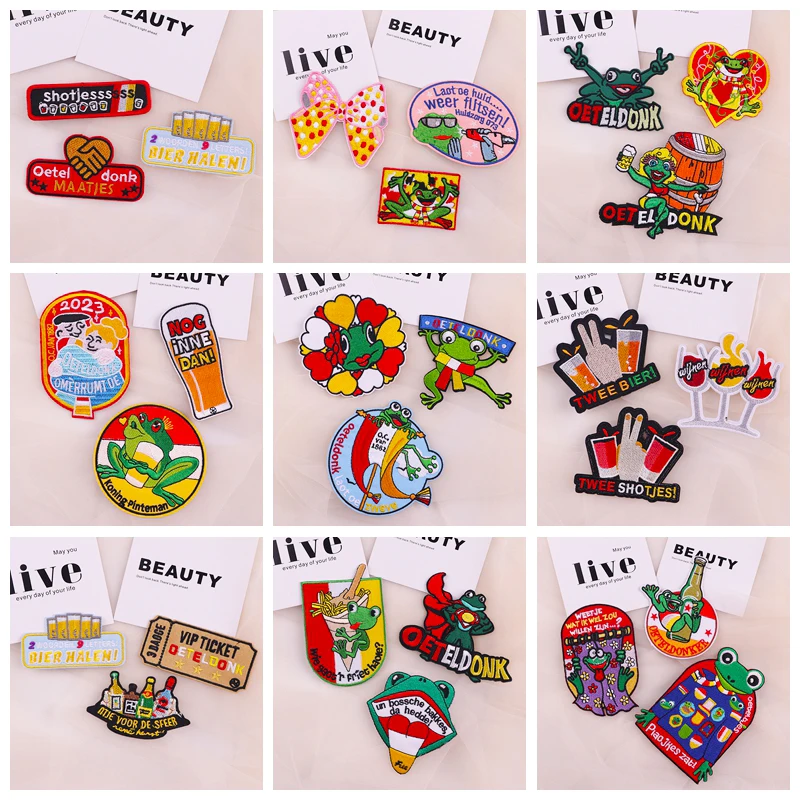 2-6 uds 2024 nuevo conjunto País de tierras Oeteldonk emblema parches bordados carnaval emblen hierro en parches en ropa apliques DIY