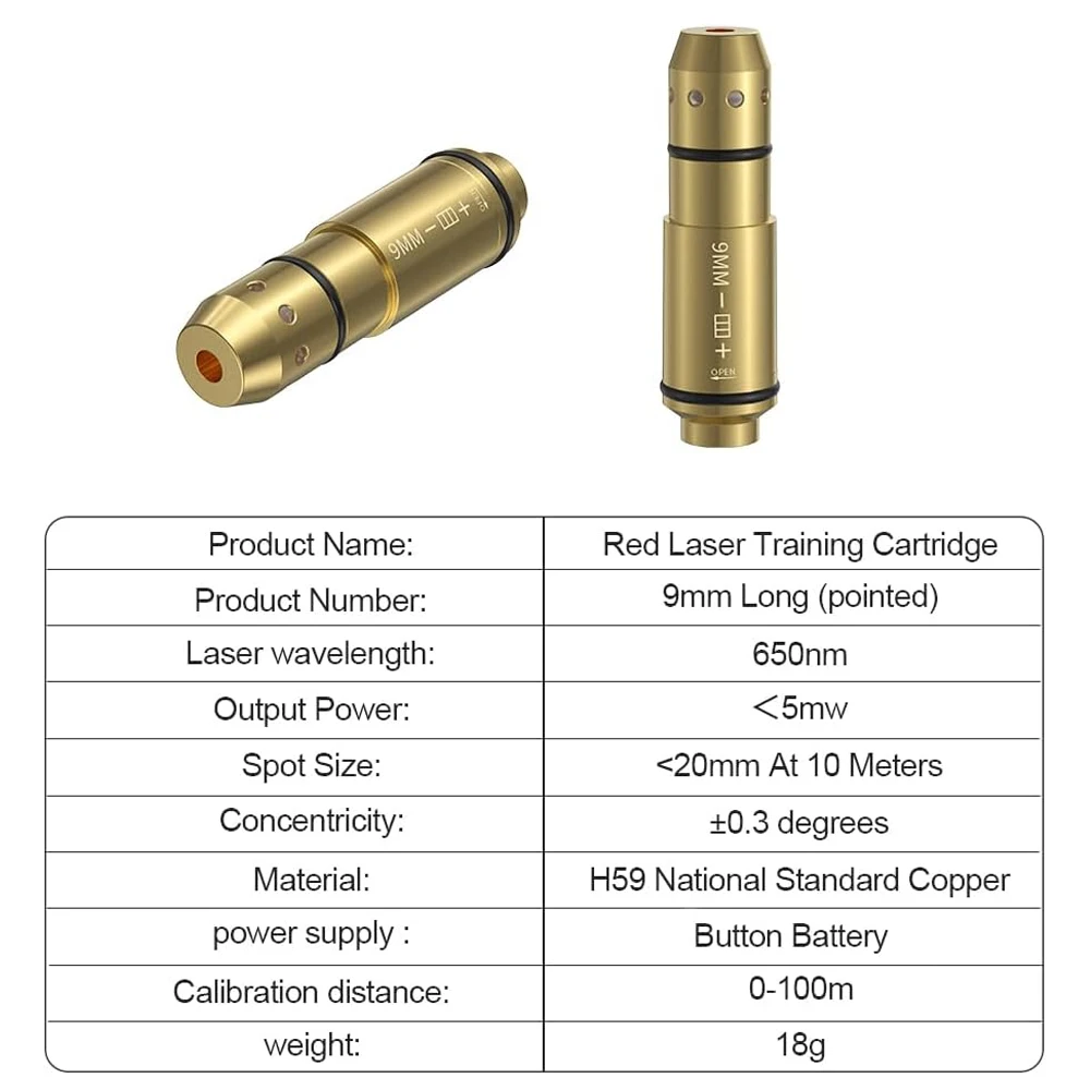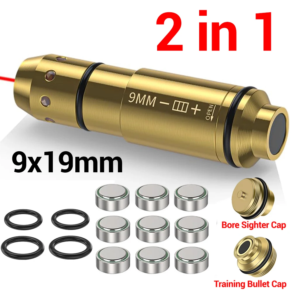 2 in 1 Tactical 9x19mm Laser Training Bullet Laser Bore Sighter Combo Boresighter for Dry Fire Training and Sight Zeroing