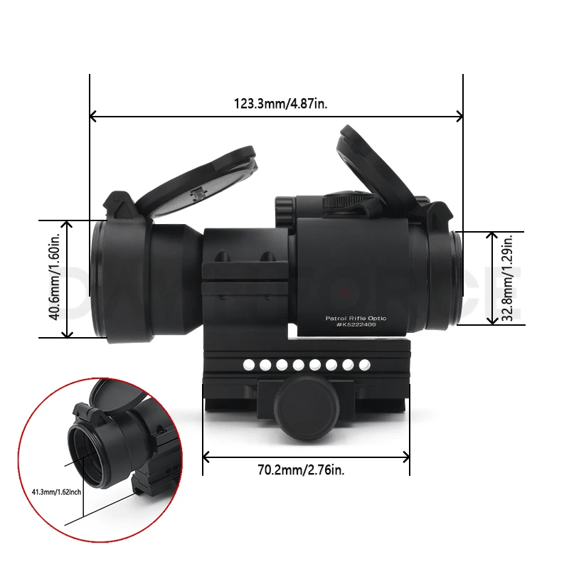 Especificaciones ópticas:Aumento 1x, tamaño de punto 2 MOA, revestimiento antirreflejo multicapa, compatible con NVD